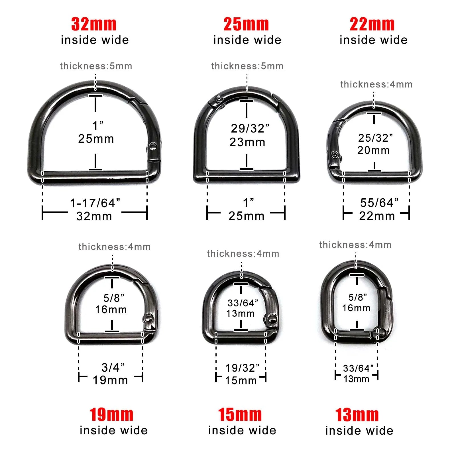 D-förmiger Federring Metall Schnappverschluss für Taschen Riemen Schlüssel