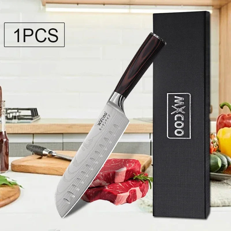 Damaststahl Küchenmesser Holzgriff Scharf Vielseitiges Santokumesser