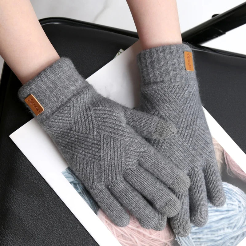 Warme Damen Alpaka Strickhandschuhe mit Fleecefutter und Touchscreen