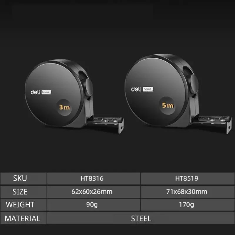Dieses 5 Meter lange Maßband aus robustem Stahl ist ideal für präzises Messen bei der Holzverarbeitung und im Haushalt. Die schwarze, korrosionsbeständige Oberfläche sorgt für Langlebigkeit, während das multifunktionale Design das Arbeiten erleichtert.
