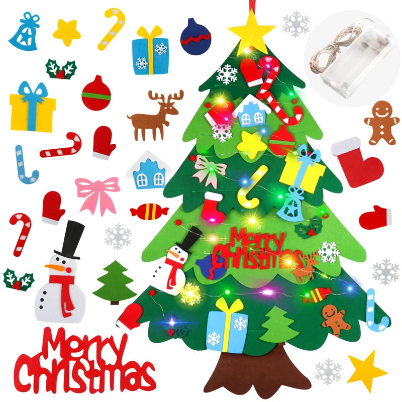 DIY Filz Weihnachtsbaum mit LED, Kinderspielzeug und Dekoration