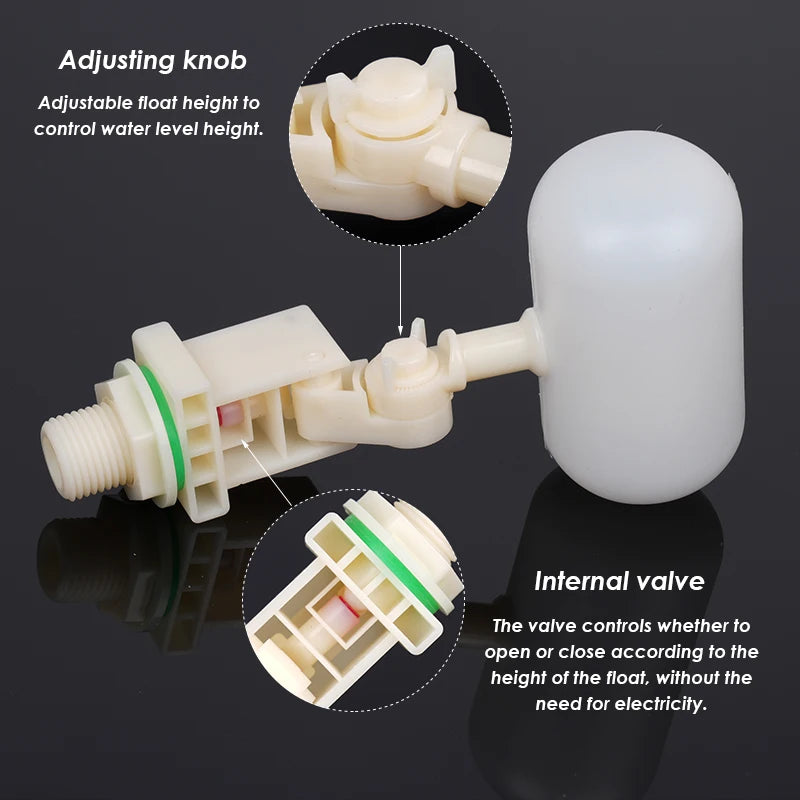 Dieses einstellbare schwimmende Füllventil eignet sich ideal zur automatischen Steuerung des Wasserstands in Tanks. Besonders praktisch für landwirtschaftliche Anwendungen wie Hühnertränken, gewährleistet es eine effiziente Wasserzufuhr ohne manuelles Eingreifen.