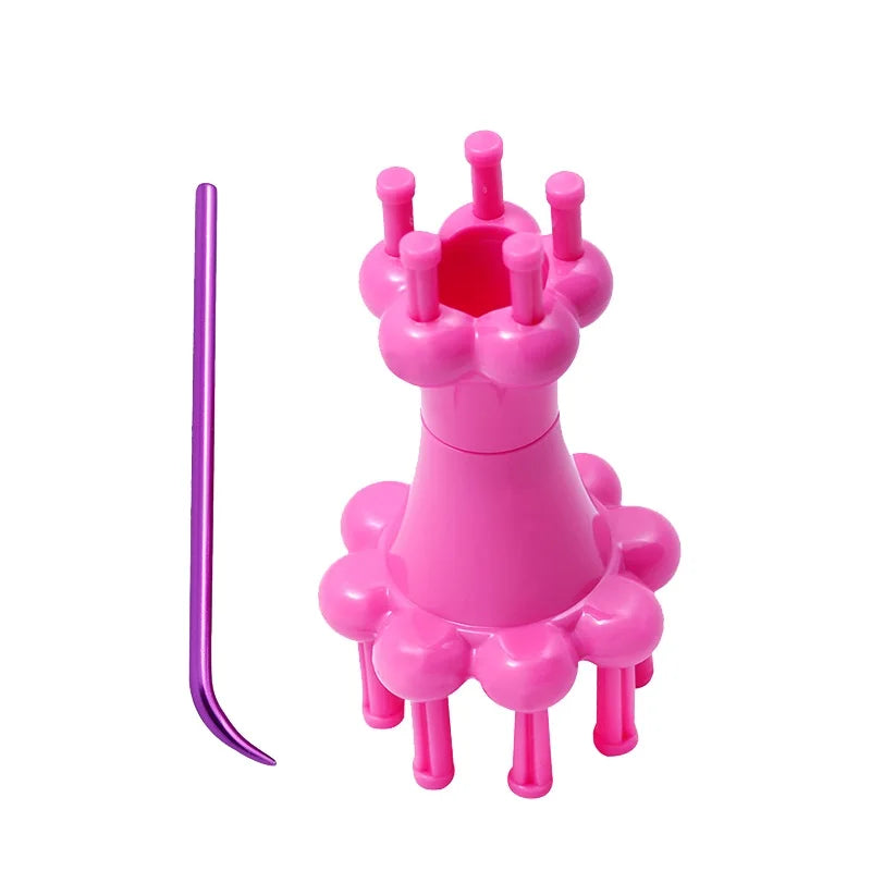 Doppelkopf Garn Kunststoff Strickpuppe Bastelset Spule mit Häkelnadel