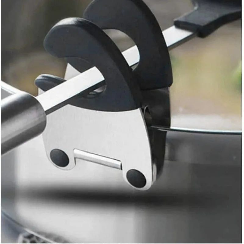 Dieser praktische Löffelhalter-Clip aus Edelstahl mit Silikonbeschichtung ist ideal, um Kochutensilien sauber am Topfrand zu befestigen. Er schützt vor Verbrennungen und sorgt für Ordnung in der Küche. Der Clip ist hitzebeständig und langlebig, perfekt für den täglichen Einsatz.