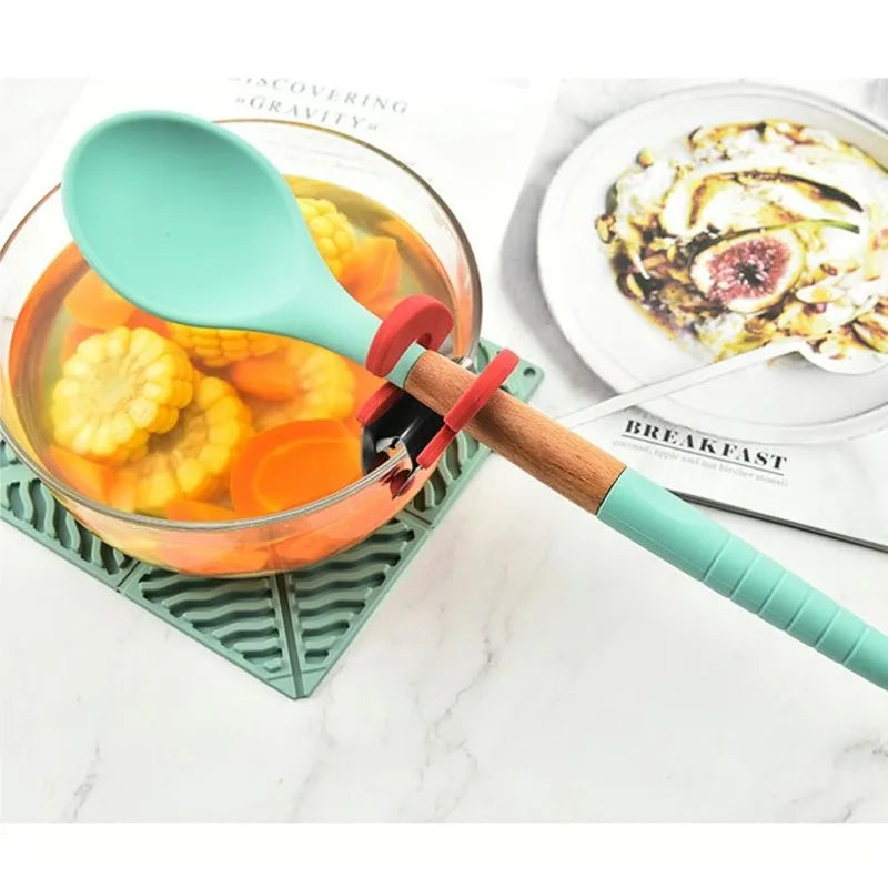 Hitzebeständiger Löffelhalter Clip aus Edelstahl mit Silikonbeschichtung