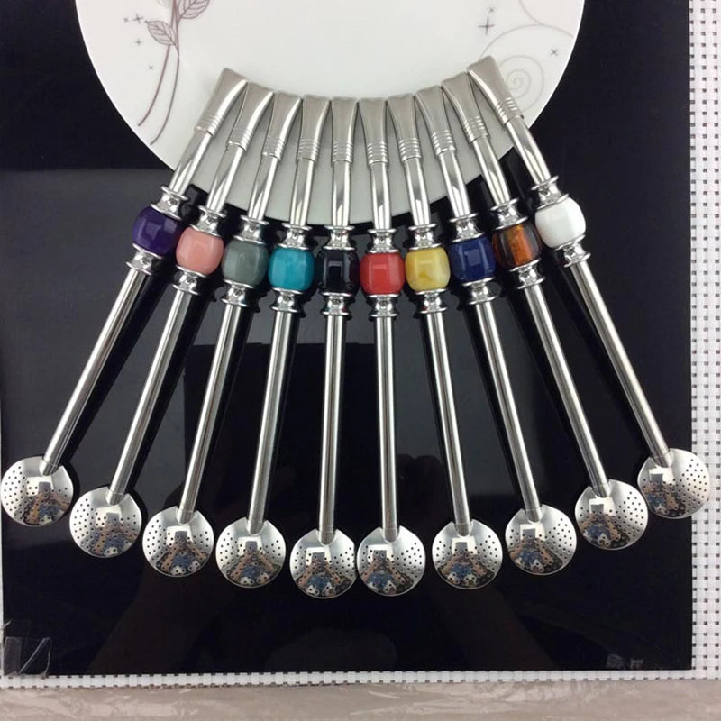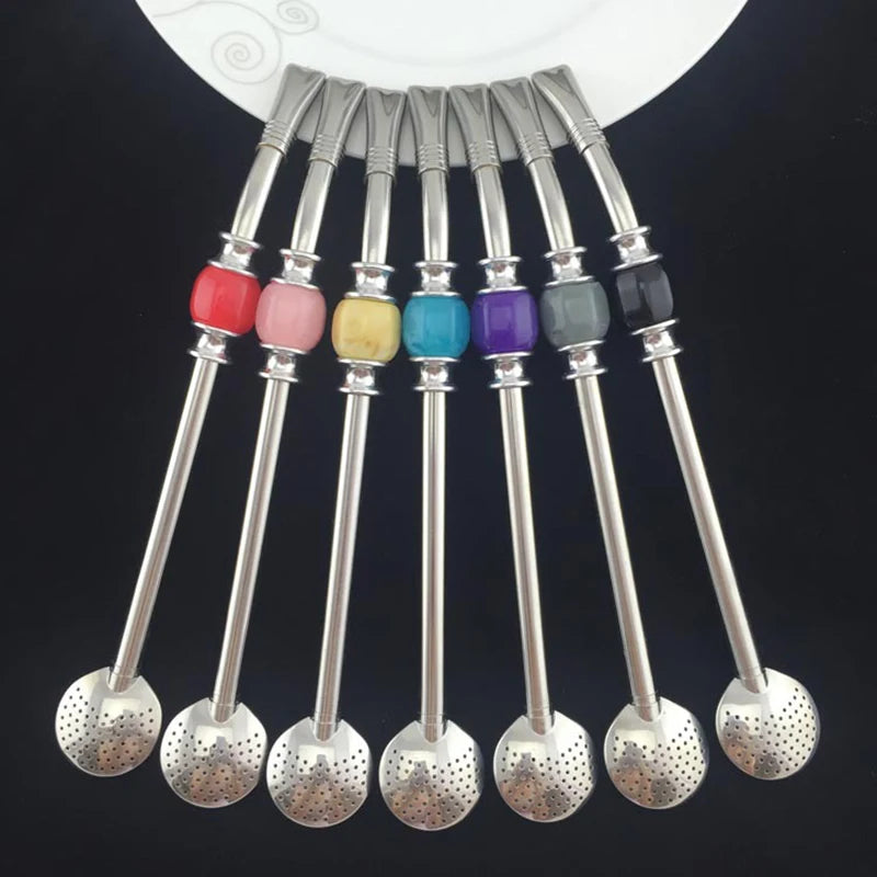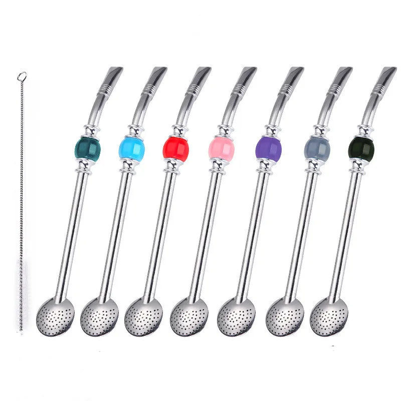 Edelstahl Trinkhalm mit Löffel und Tee-Filter für wiederverwendbaren Genuss