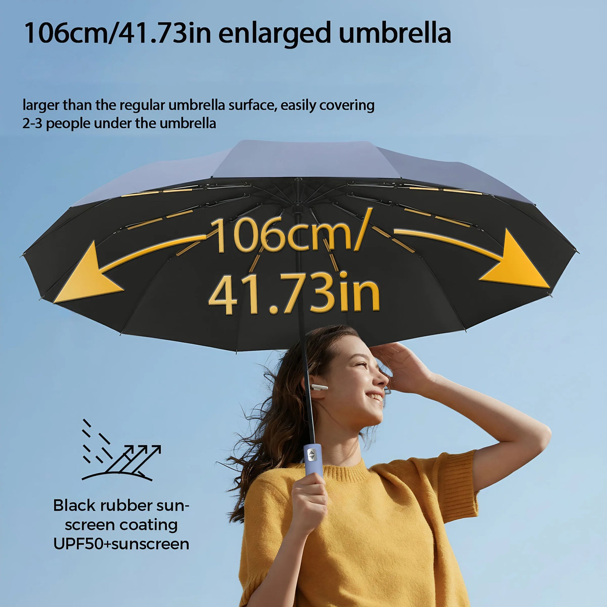 Dieser hochwertige Regenschirm ist perfekt für Erwachsene, die zuverlässigen Schutz bei Regen und Sonne wünschen. Das vergrößerte Schirmgesicht bietet erweiterten Abdeckbereich, ideal für den Alltag oder unterwegs.
