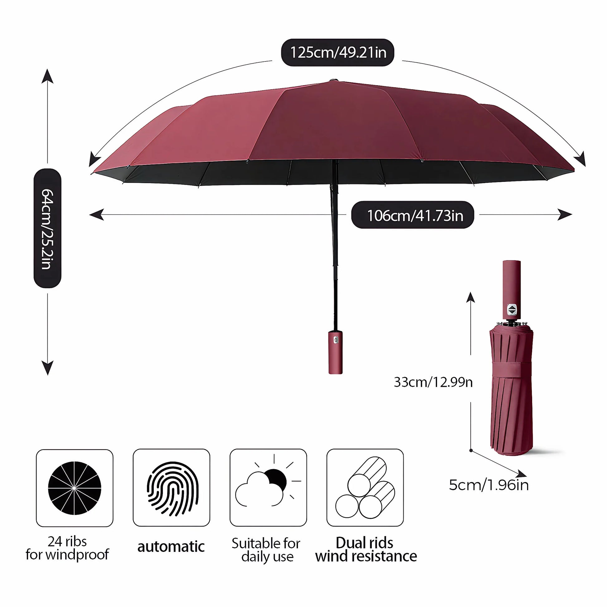 Automatischer 12-Knochen Doppelschirm mit großem Nylon-Schirm und stabilem Rahmen