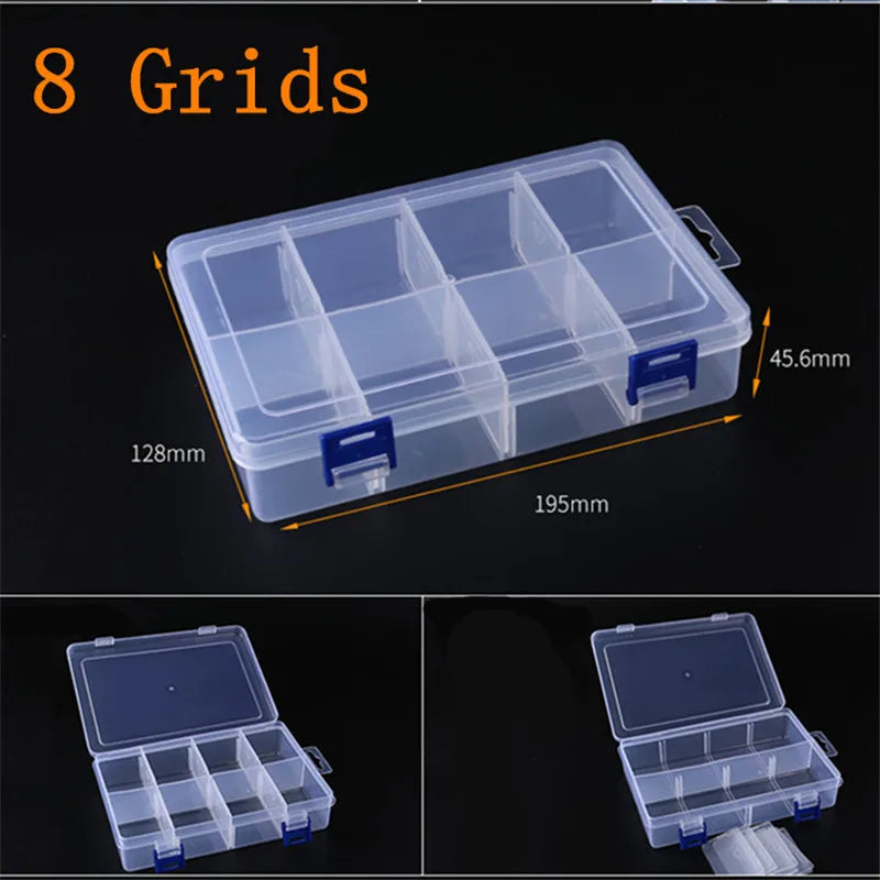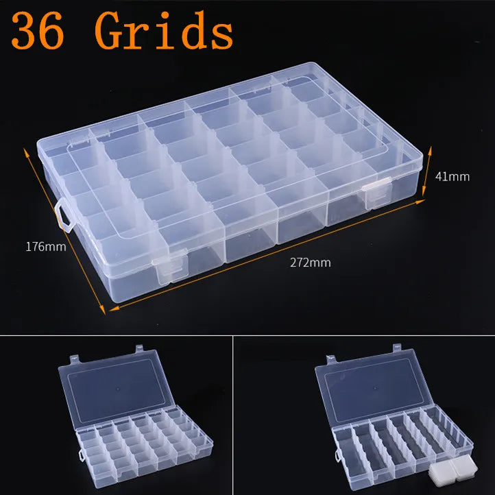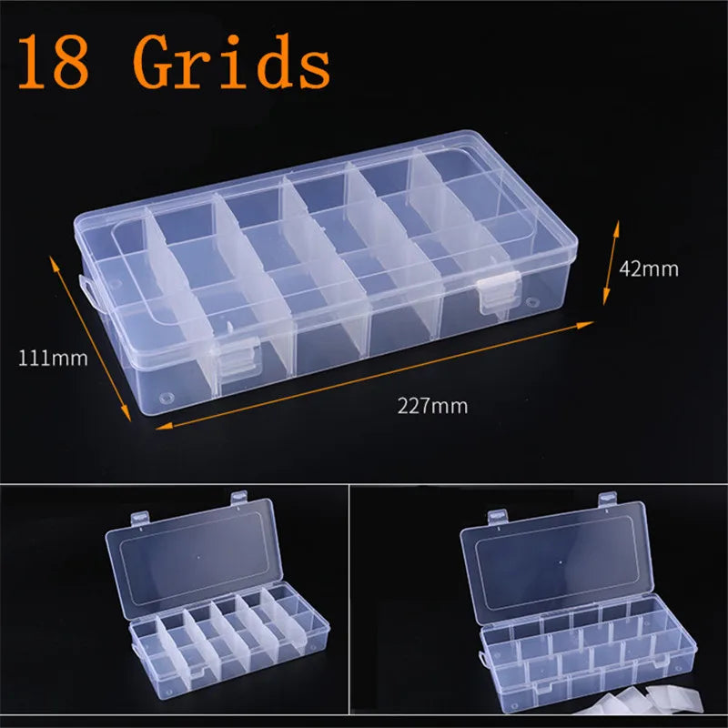 Diese verstellbare Kunststoffbox bietet flexiblen Stauraum mit 3 bis 36 Fächern. Ideal zur Aufbewahrung von Schmuck, Schrauben, Perlen oder anderen kleinen Gegenständen.