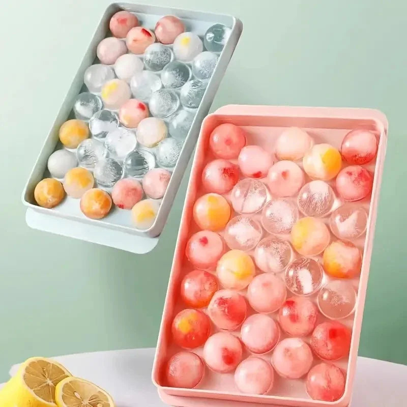Stilvolle Eiswürfelschale mit Deckel – BPA-frei, runde Diamant-Eisbälle, 33 Stück