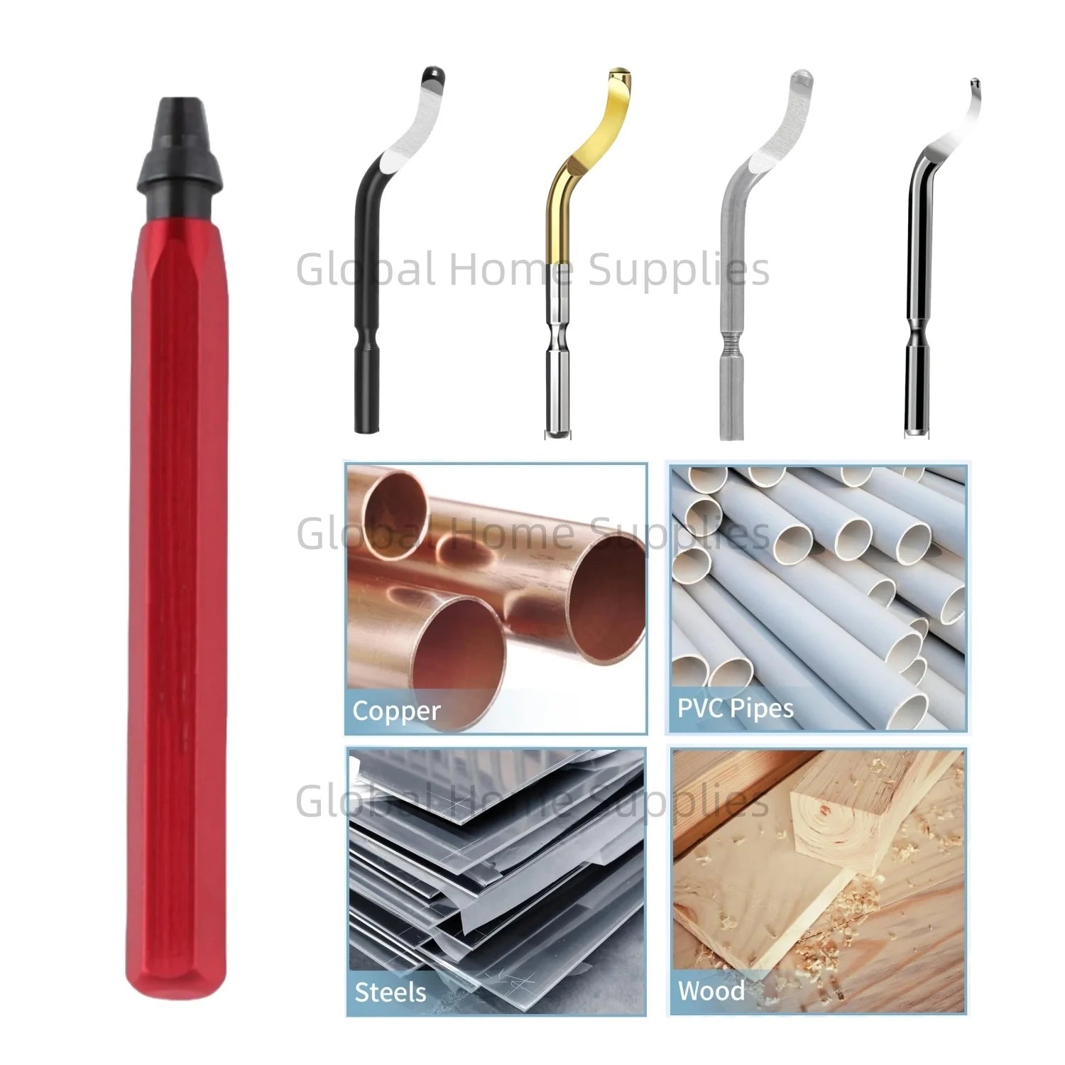 Entgratungswerkzeug mit 1 Griff und 4 Klingen aus Schnellarbeitsstahl