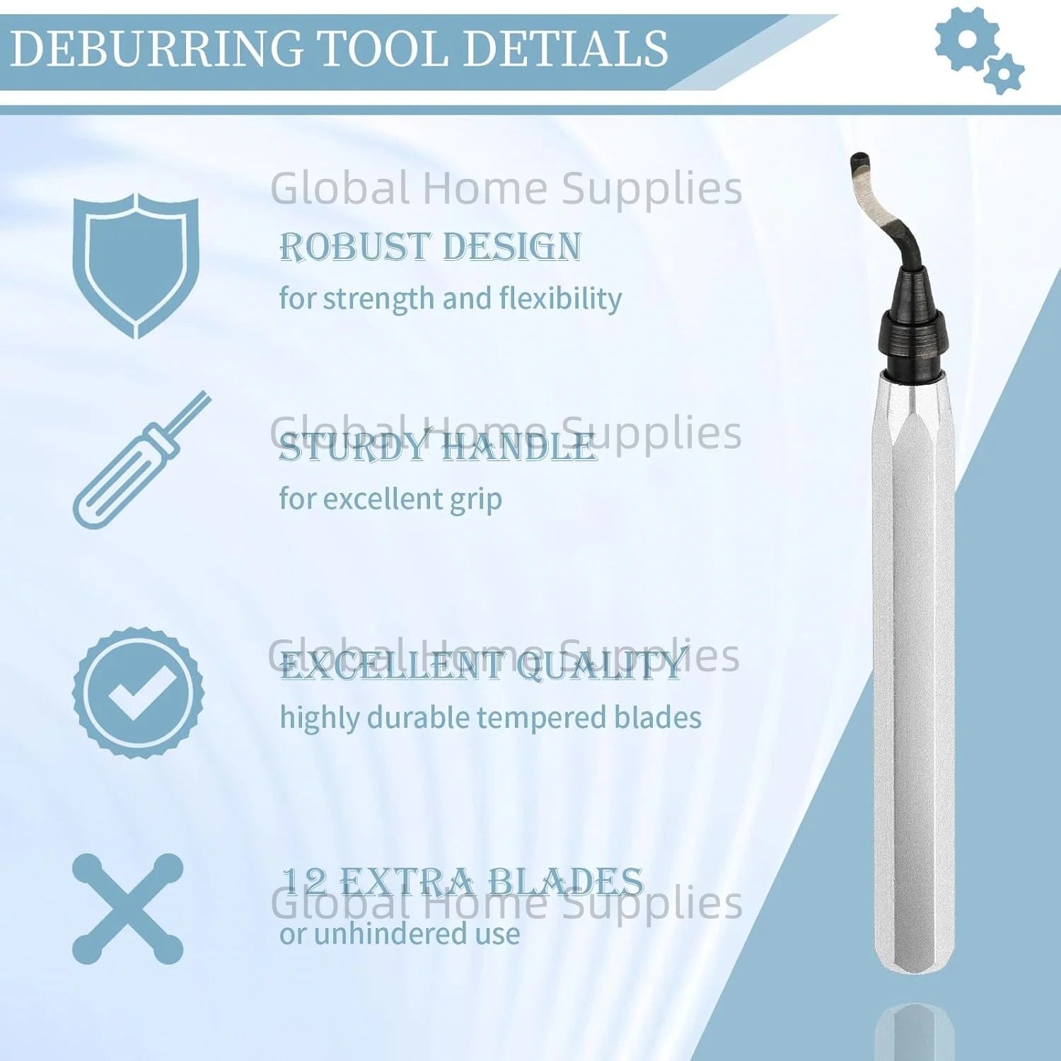 Dieses Entgratungswerkzeug ist mit 10 zusätzlichen Schnellarbeitsstahl-Drehmessern ausgestattet und eignet sich perfekt zum Entfernen von Graten an Metallharz-, PVC-Rohren, Kupfer, Kunststoff und 3D-gedruckten Kanten. Es bietet eine zuverlässige und effiziente Lösung für präzises Entgraten.
