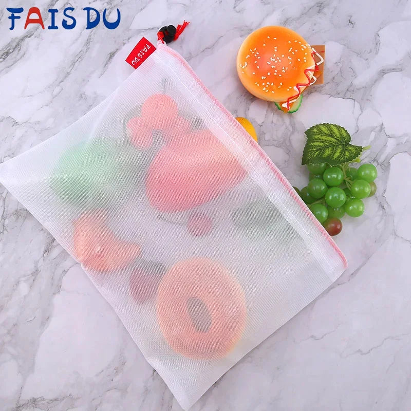Wiederverwendbare Netzbeutel für Obst Gemüse und Spielzeug