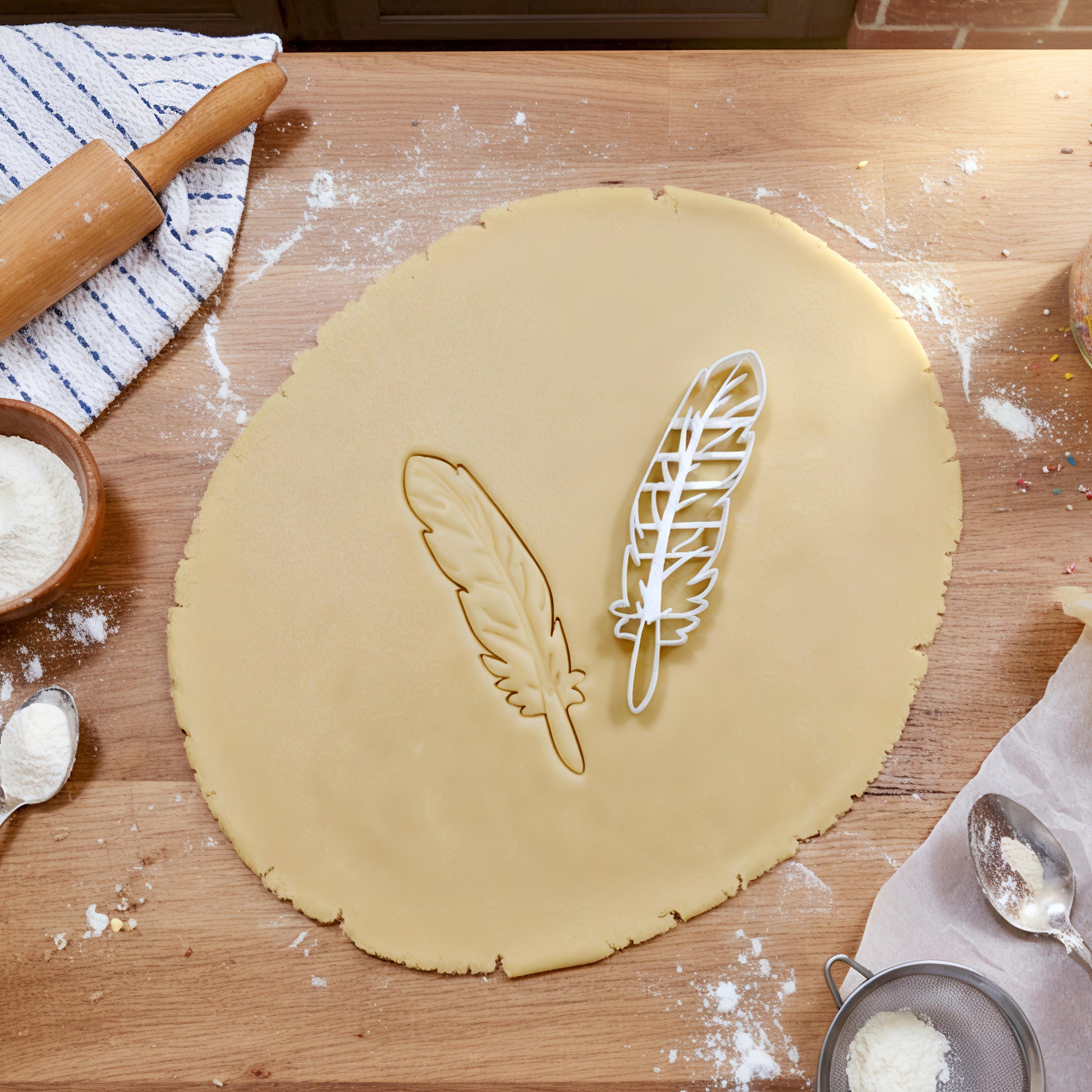 - Design und Farbe: Elegantes, federförmiges Motiv mit scharfen Konturen für exakte Ausstechergebnisse.