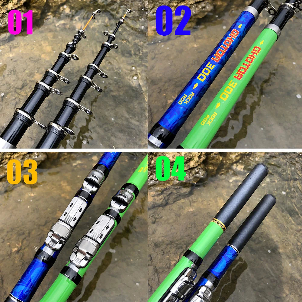 Fern Casting Teleskop Angelrute aus Carbon 1,5m bis 3m für Felsenangeln