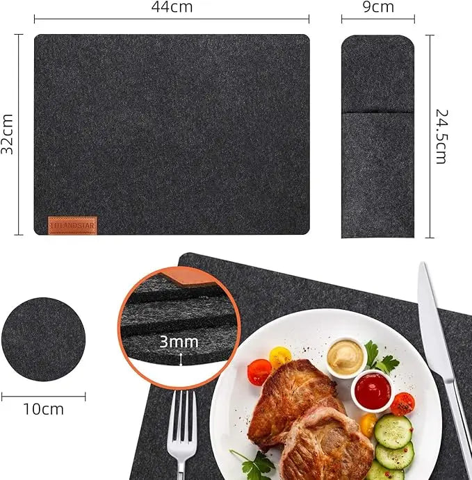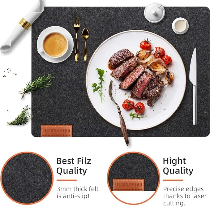 Hitzebeständige Filz Tischsets mit passenden Untersetzern