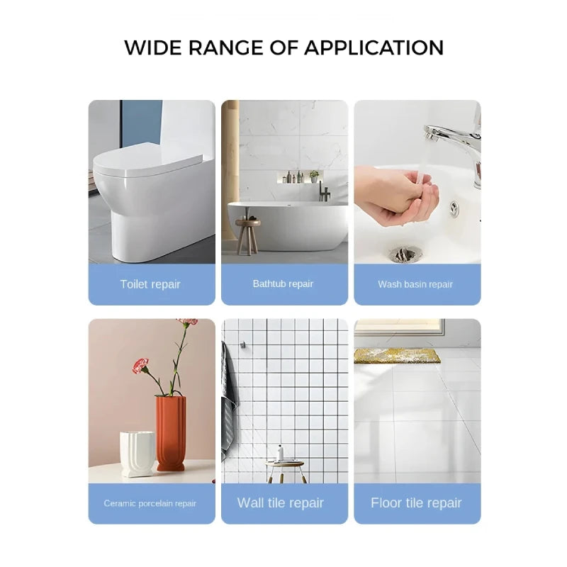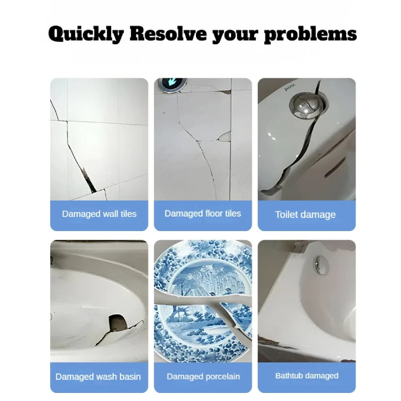 Dieses Reparaturmittelset eignet sich ideal zur Ausbesserung von Rissen, Brüchen und Schäden an Fliesen, Keramik, Porzellan sowie Marmoroberflächen. Die praktische Paste ermöglicht eine einfache und dauerhafte Dichtungsreparatur für Böden, Toiletten und Waschbecken.