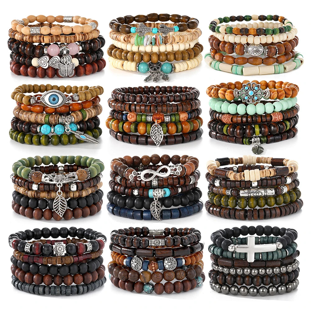 Mehrschichtiges Holzperlen Armband Set Ethnisch Trendy Schmuck Geschenk