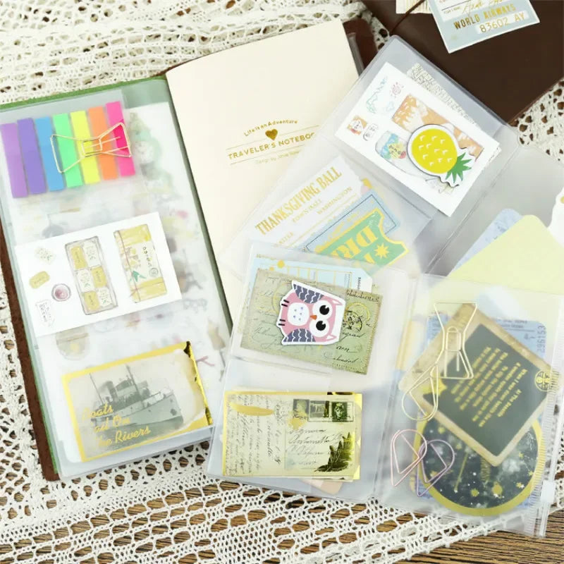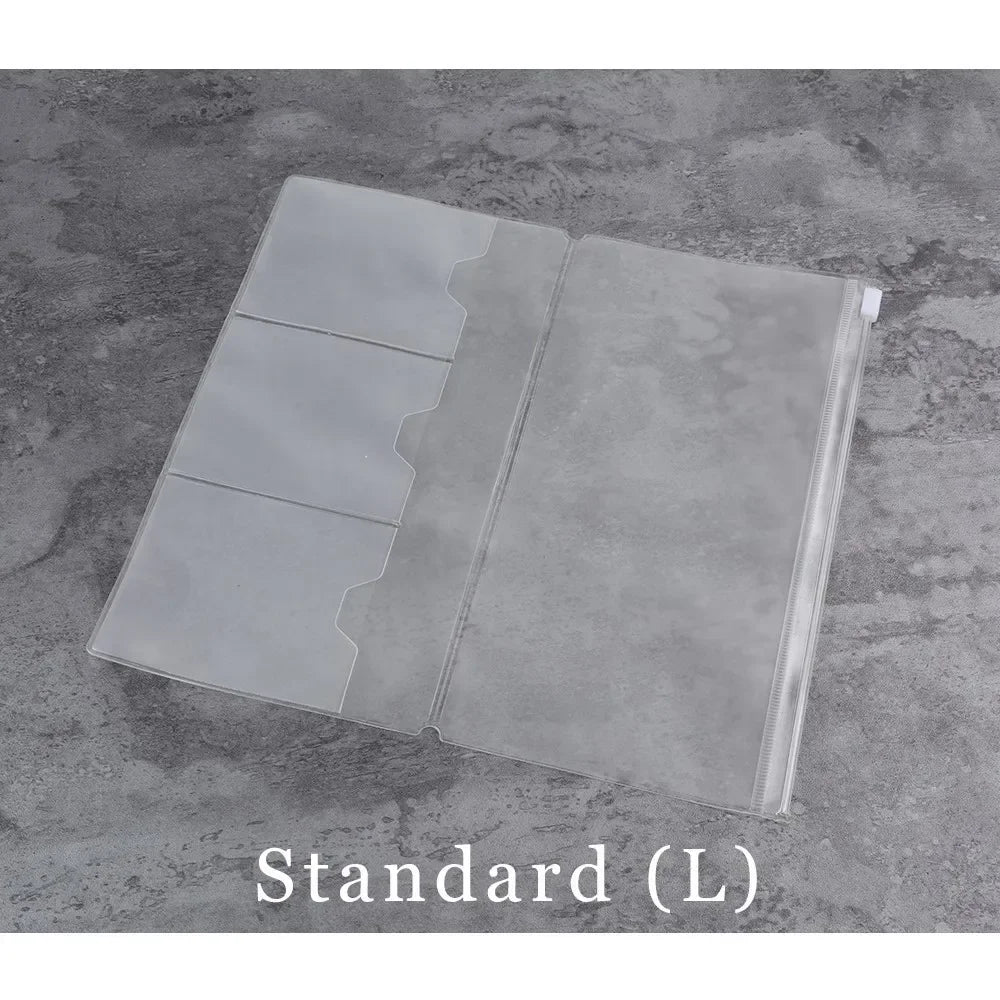 Diese PVC Reißverschlusstasche eignet sich ideal zur Aufbewahrung von Notebooks, Journal-Zubehör und Karten. Sie ist in verschiedenen Größen wie A5, Standard, Pocket und Passport erhältlich und perfekt für Planung und Organisation unterwegs.