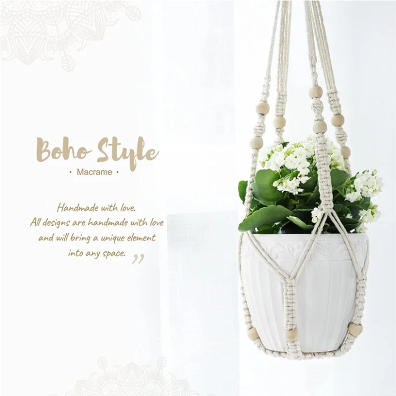 Natürliche Makramee Hängekörbe als dekorative Pflanzentöpfe
