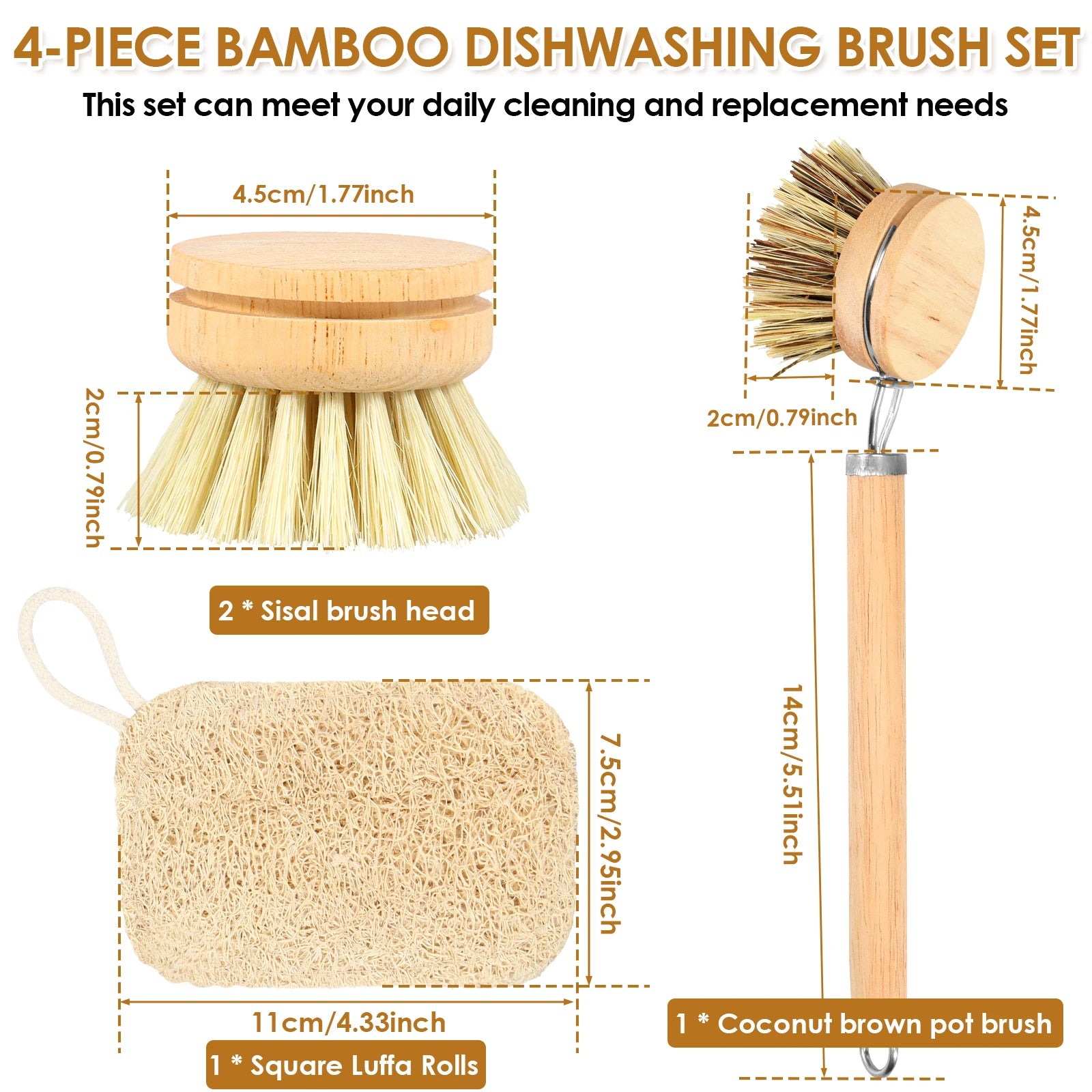 - Natürliches Material: Hergestellt aus Bambus und natürlichem Sisal für eine gründliche, schonende Reinigung.