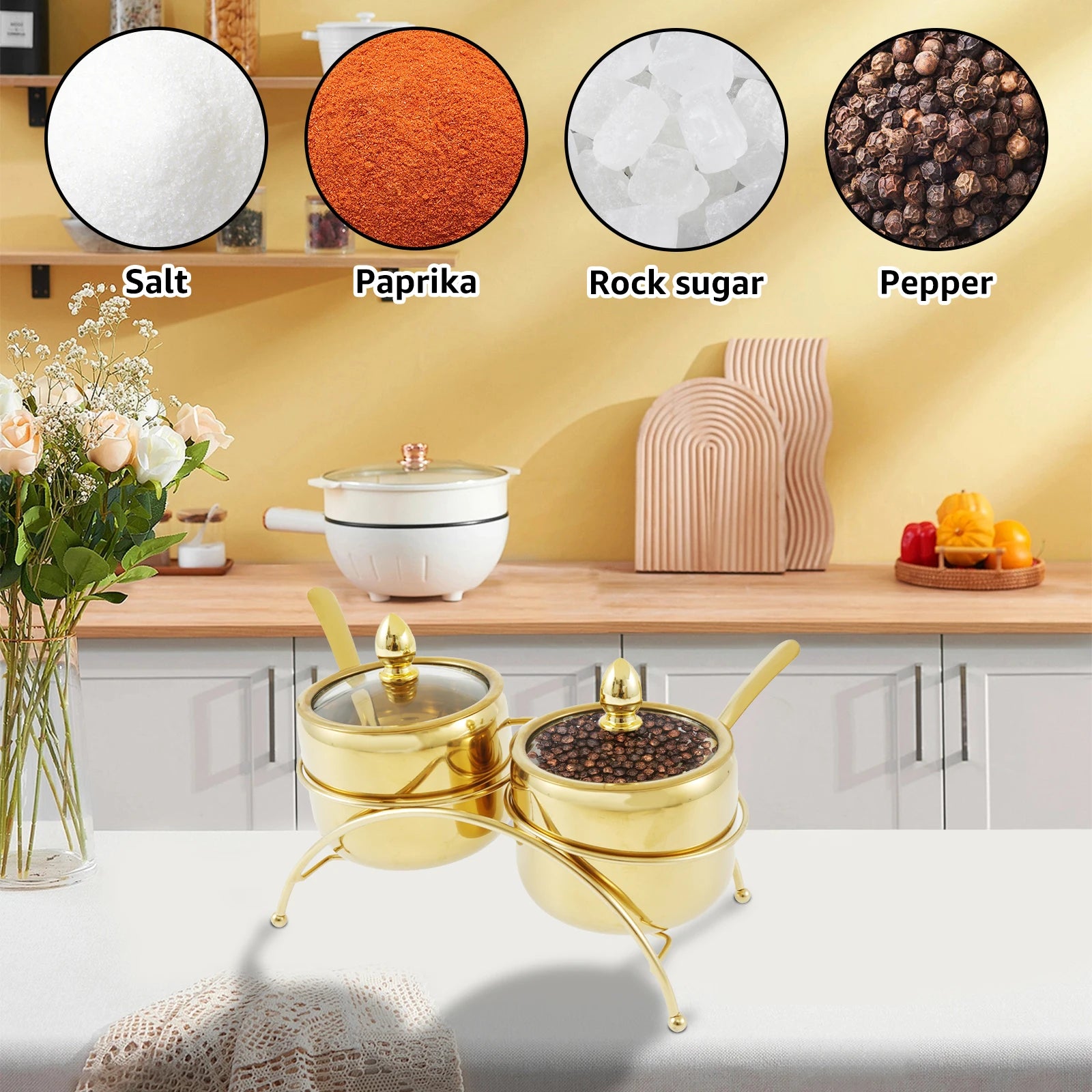2er Set Edelstahltöpfe Gewürzbox mit Löffel Gold Gewürzregal Pfeffer