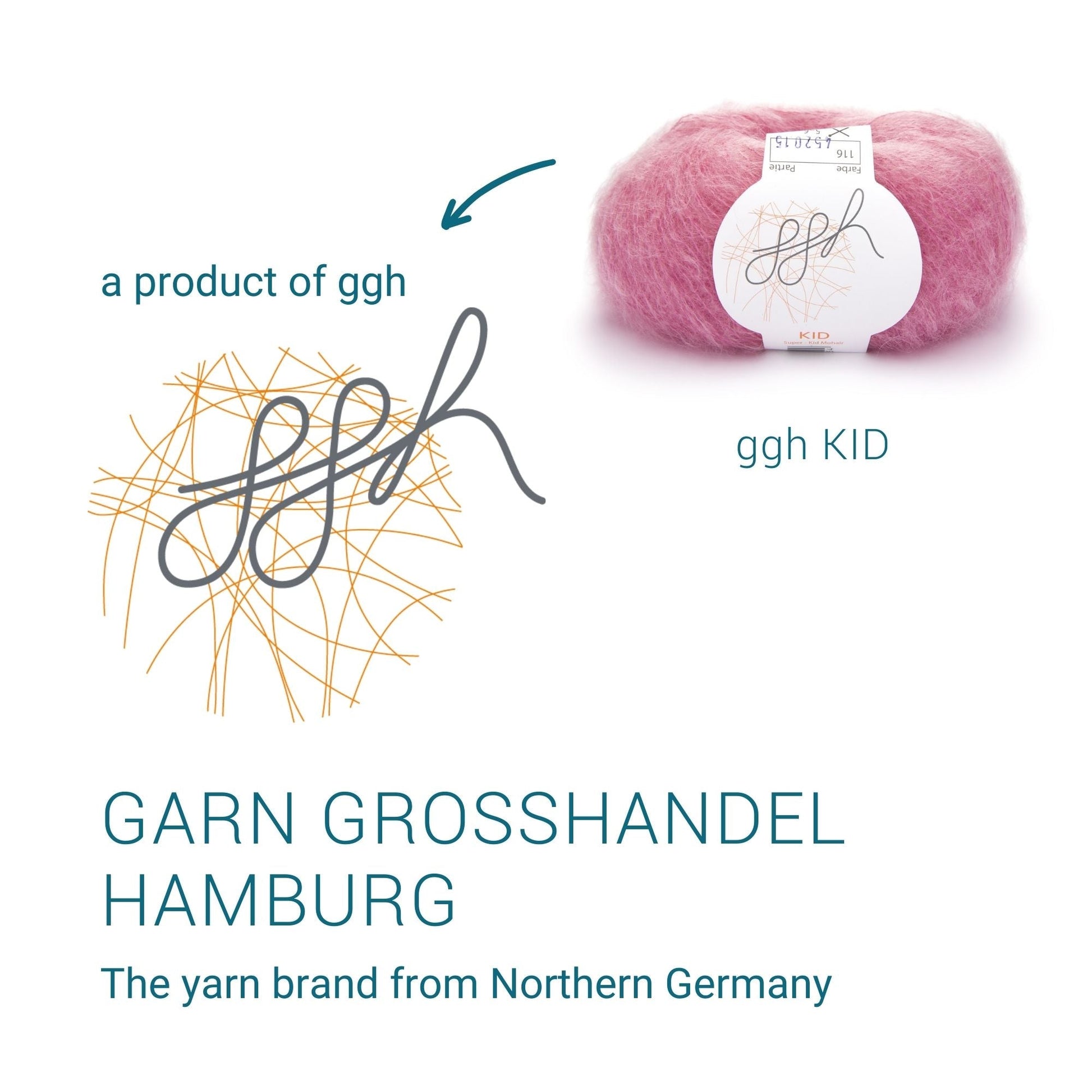 Erleben Sie mit ggh Kid ein luxuriöses Lacegarn aus 65% Super-Kid-Mohairwolle, 5% Schurwolle und 30% Polyamid. Die feinen Mohairfasern schaffen ein federleichtes und besonders weiches Garn, ideal für elegante und zugleich warme Strickstücke.