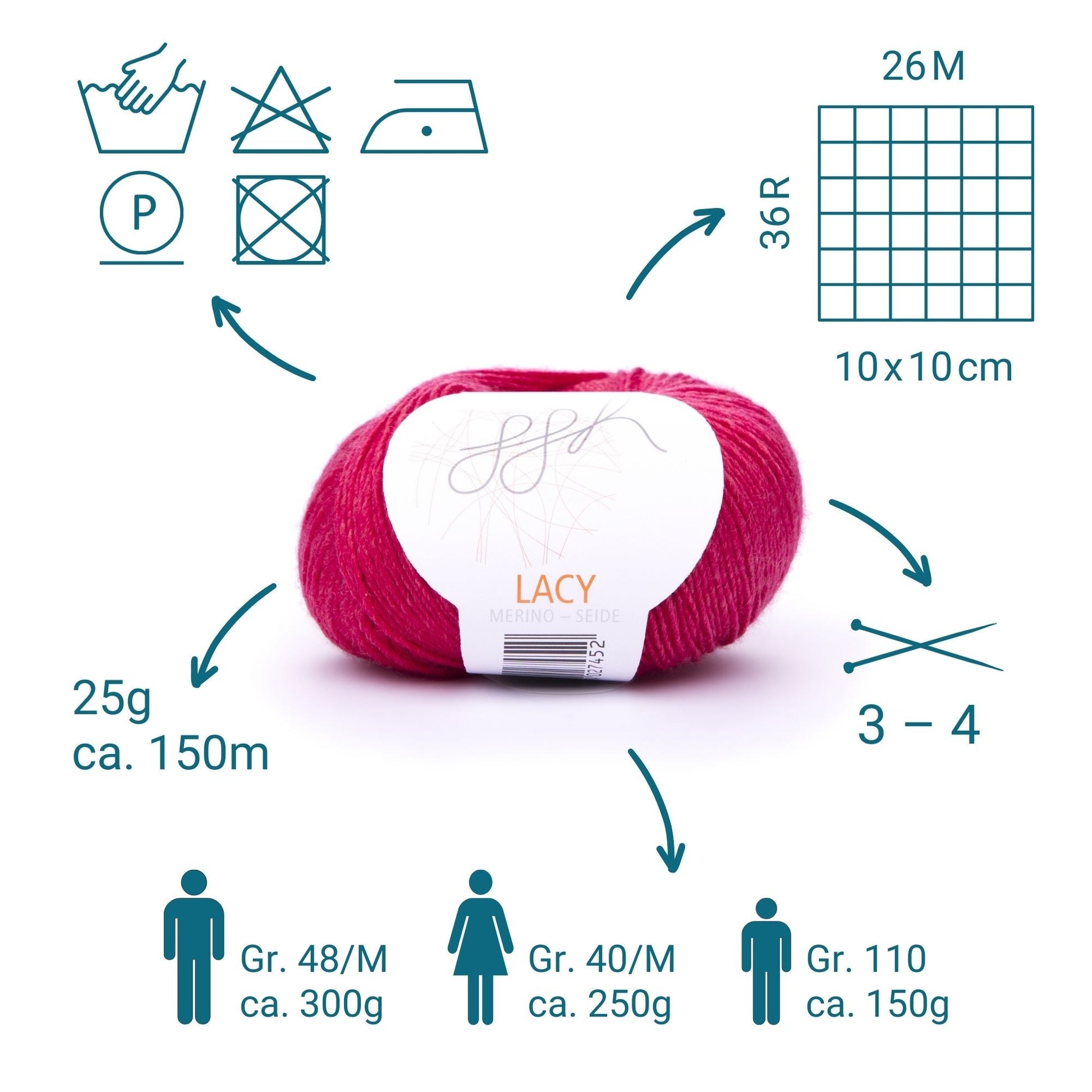 Dieses Produkt besticht durch sein Design aus hochwertiger Merinowolle und Seide und bringt Ihre Strickideen stilvoll zur Entfaltung. Erleben Sie die Leichtigkeit und Eleganz feinster Maschenkunst.