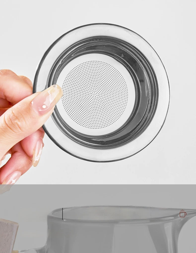 Diese handgefertigte Teetasse aus hochwertigem Pyrex-Glas bietet Ihnen ein außergewöhnliches Tee-Erlebnis. Mit ihrem ergonomischen Griff und dem integrierten Filter ist sie ideal für die Zubereitung und den Genuss von hochwertigem Aufguss geeignet.
