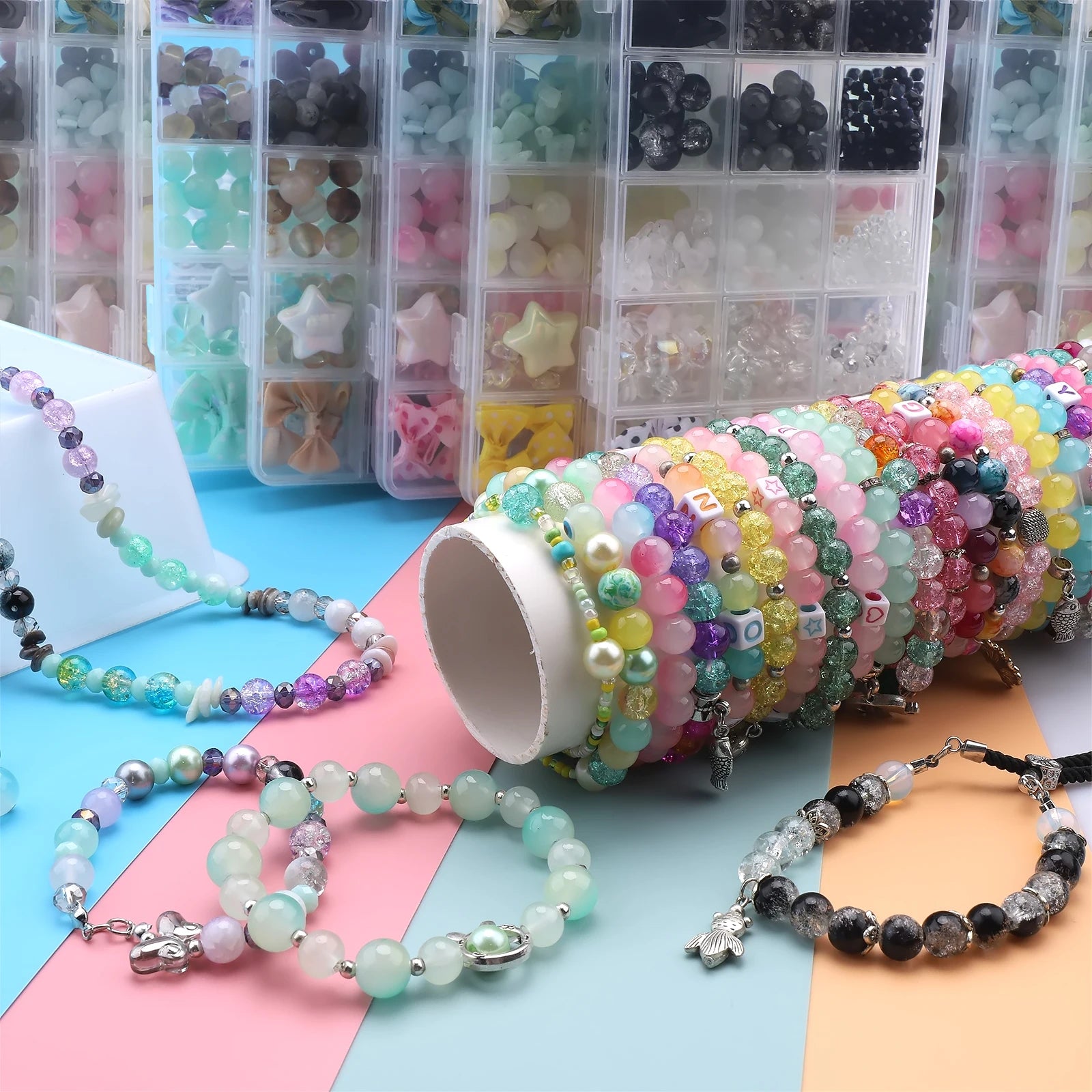 Glasperlen Herzform DIY Schmuck Set für Armband Ohrring Halskette