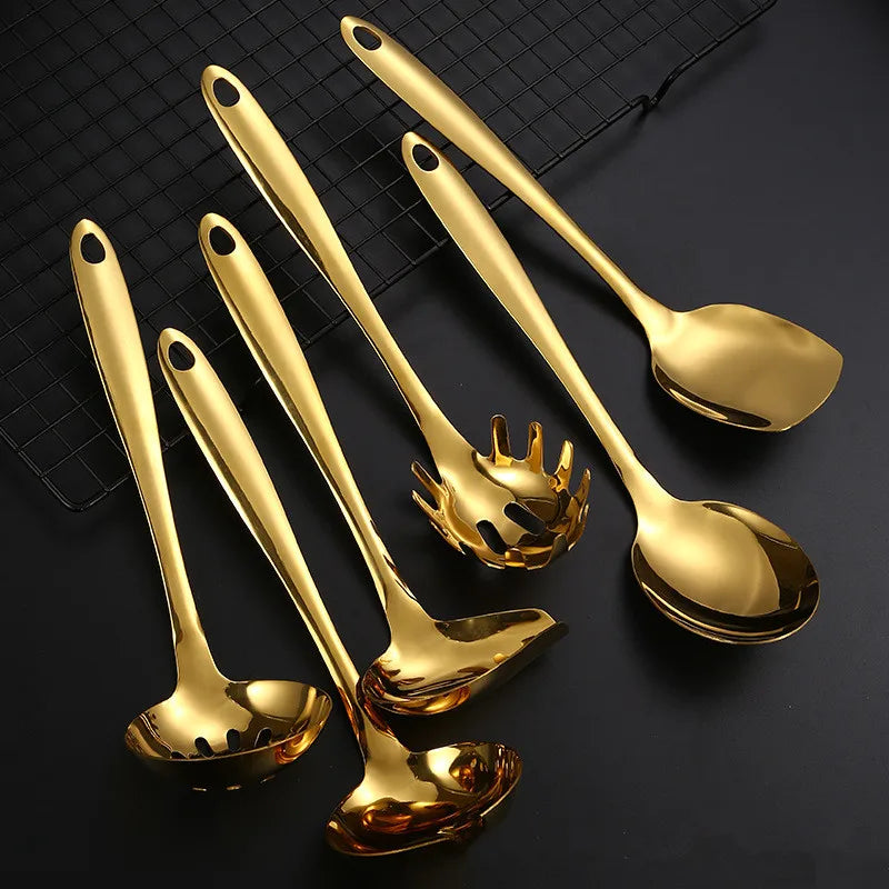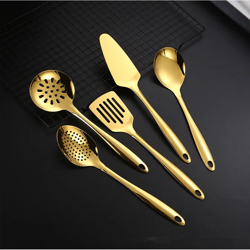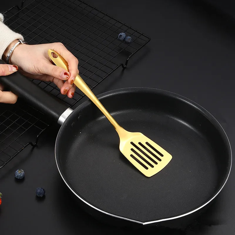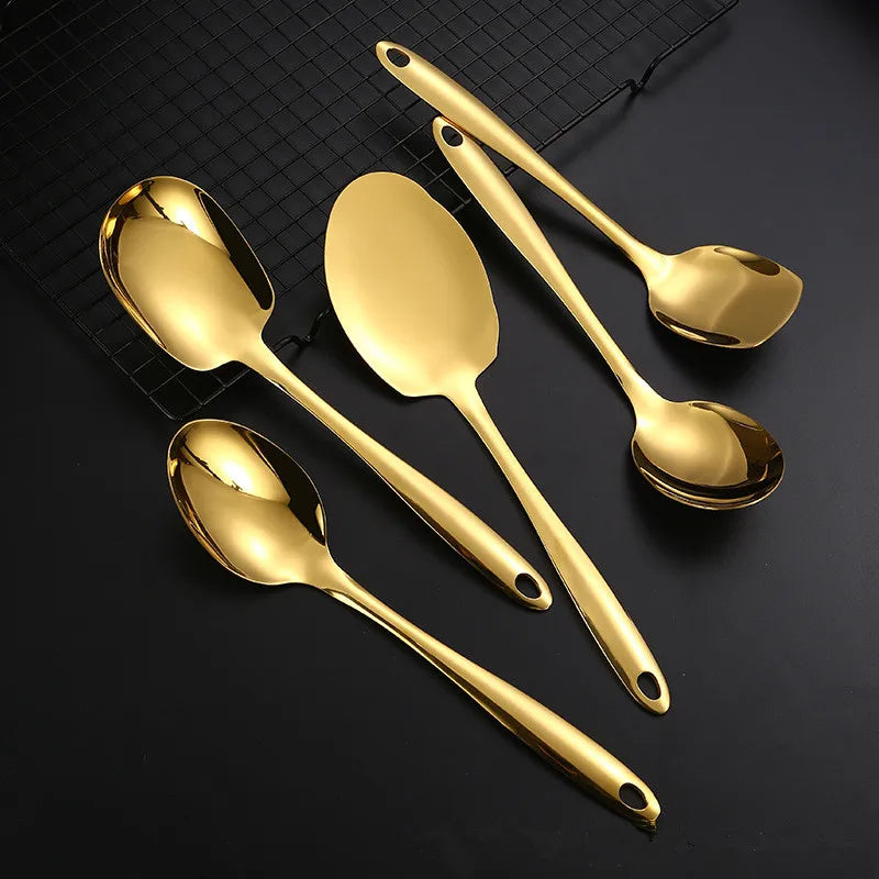 Edelstahl Küchenutensilien Set Kochlöffel Spatel mit langem Griff