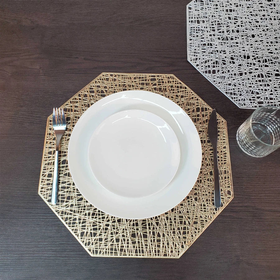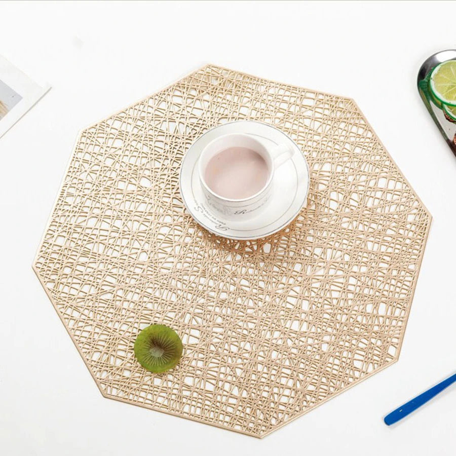 Goldene sechseckige PVC Tischsets hitzebeständig modernes Dekor
