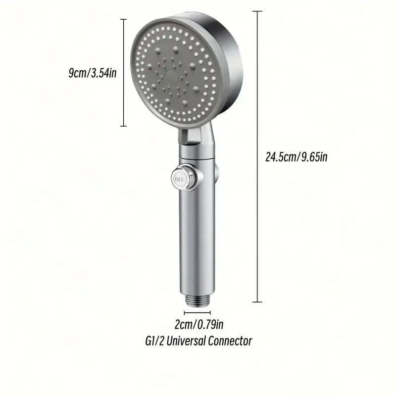 Dieser Duschkopf verfügt über 5 verschiedene Modi, die sich an Ihre individuellen Bedürfnisse anpassen – von einem sanften Regenstrahl bis hin zu einem kräftigen Massagestrahl, perfekt zur Entspannung. Die integrierte Filterfunktion sorgt dabei für ein sauberes und angenehmes Duschwasser, während die praktische Ein-/Aus-Pause-Taste eine effiziente Wassernutzung ermöglicht.