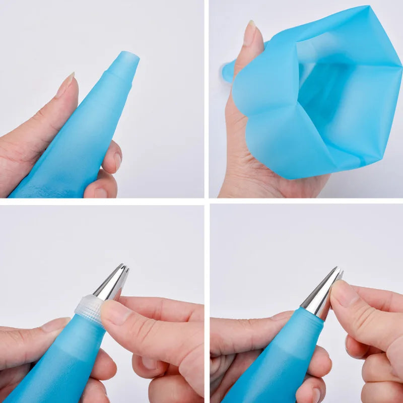 Wiederverwendbare Silikon Spritzbeutel Set mit 24 Düsen für Kuchen Deko