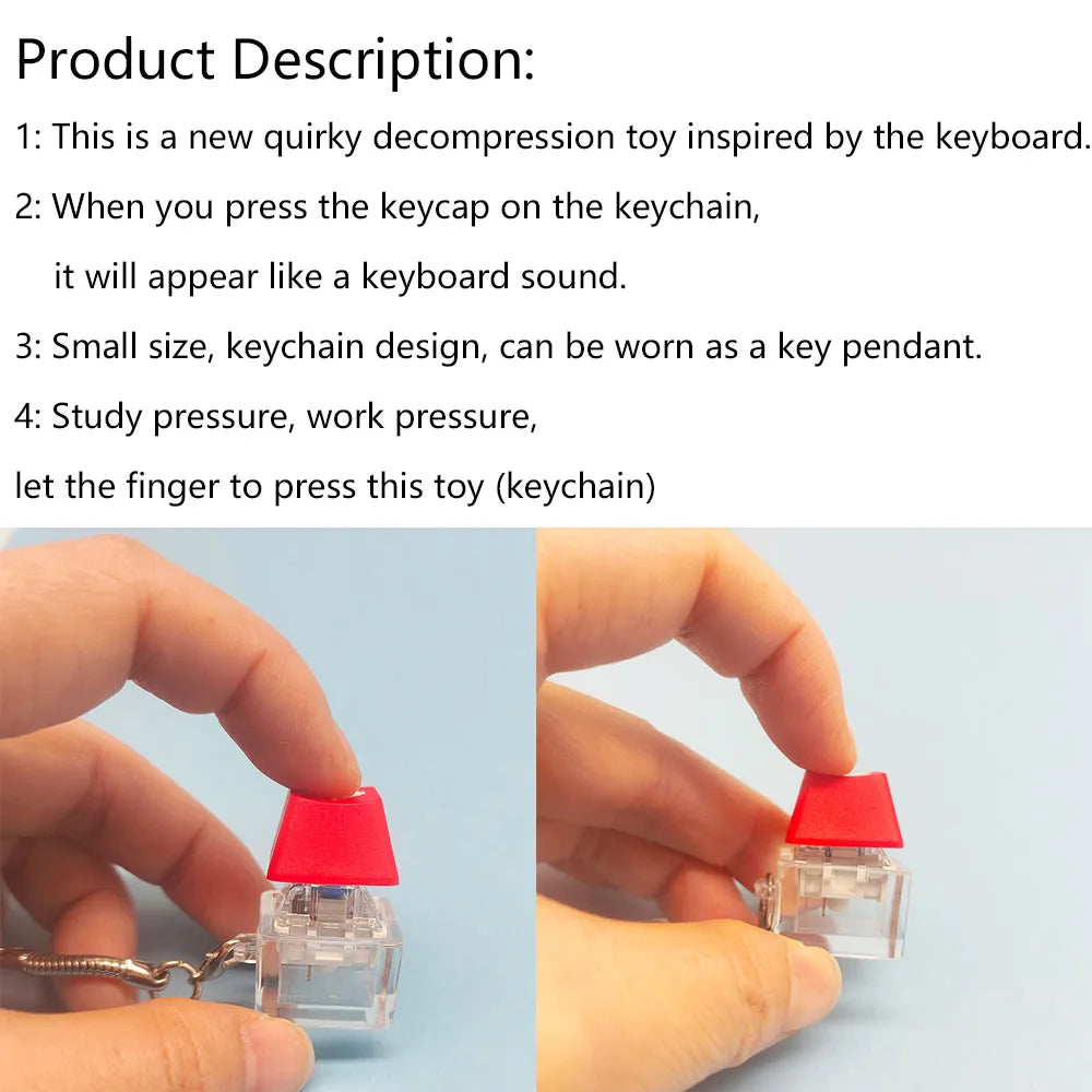 Dieses neuartige Dekompression-Spielzeug im Schlüsselanhänger-Format ist inspiriert von Tastaturen und sorgt für Stressabbau bei Studium und Arbeit. Durch das Drücken der Tasten-Kappe entsteht ein Tastaturklang, der entspannend wirkt.