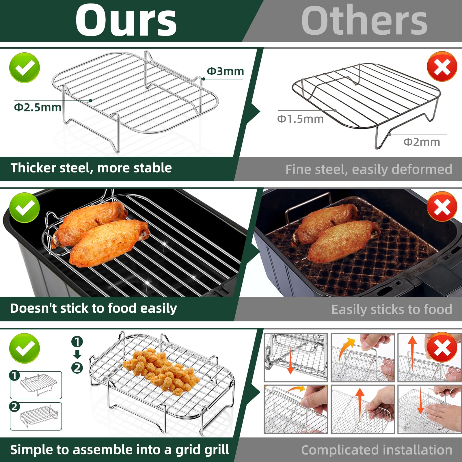 - Breite Kompatibilität mit vielen Heißluftfritteusen mit 7,6 bis 10,4 Litern Fassungsvermögen
