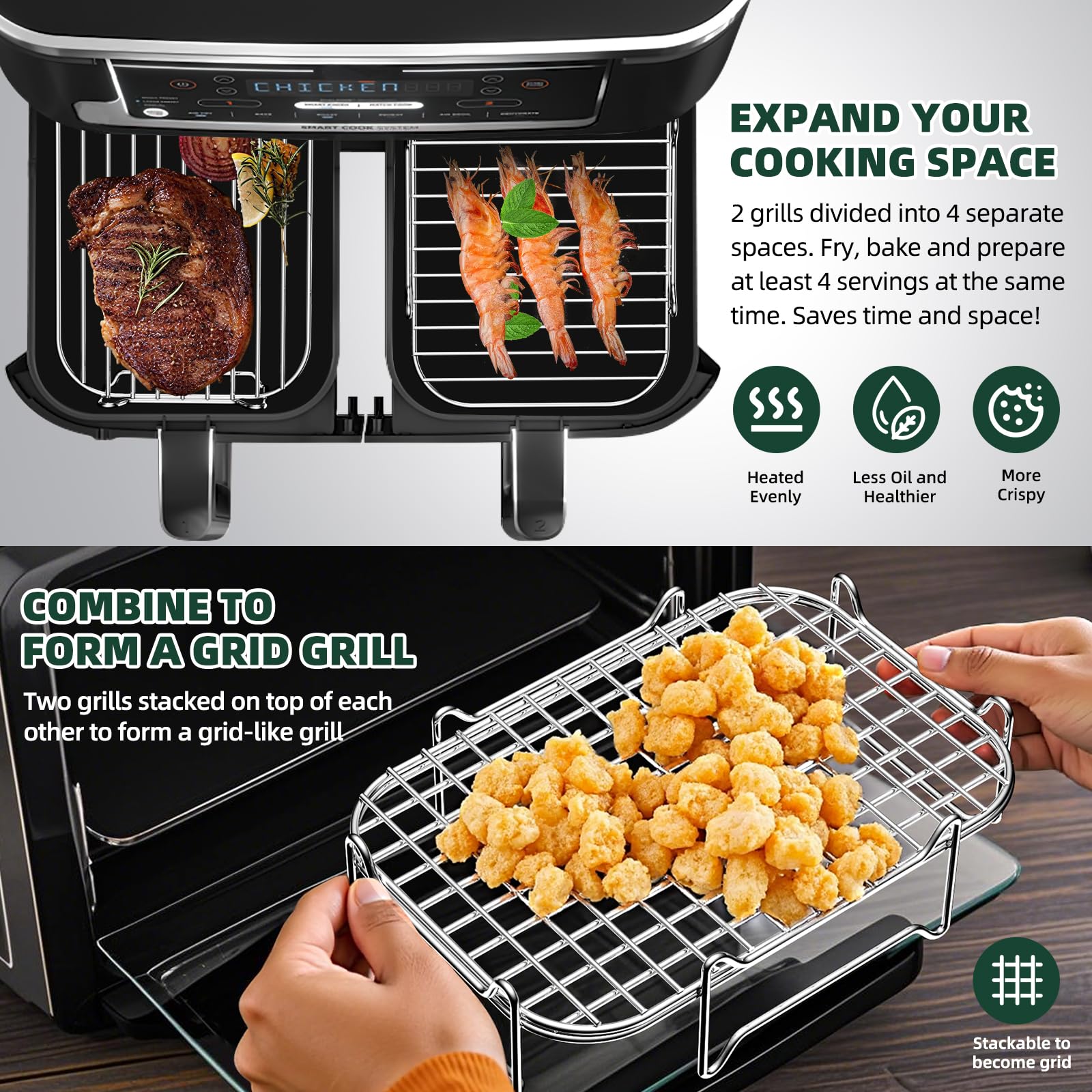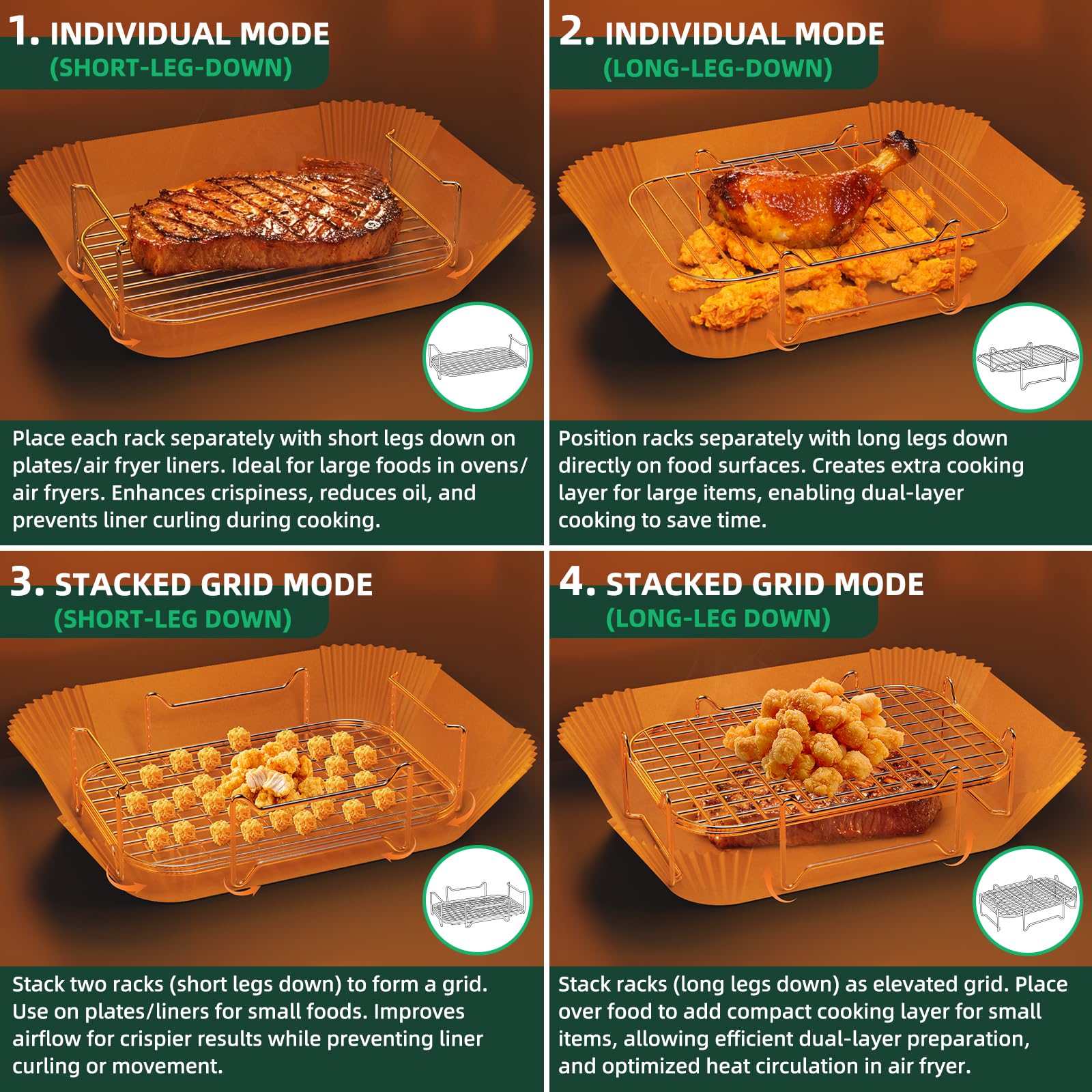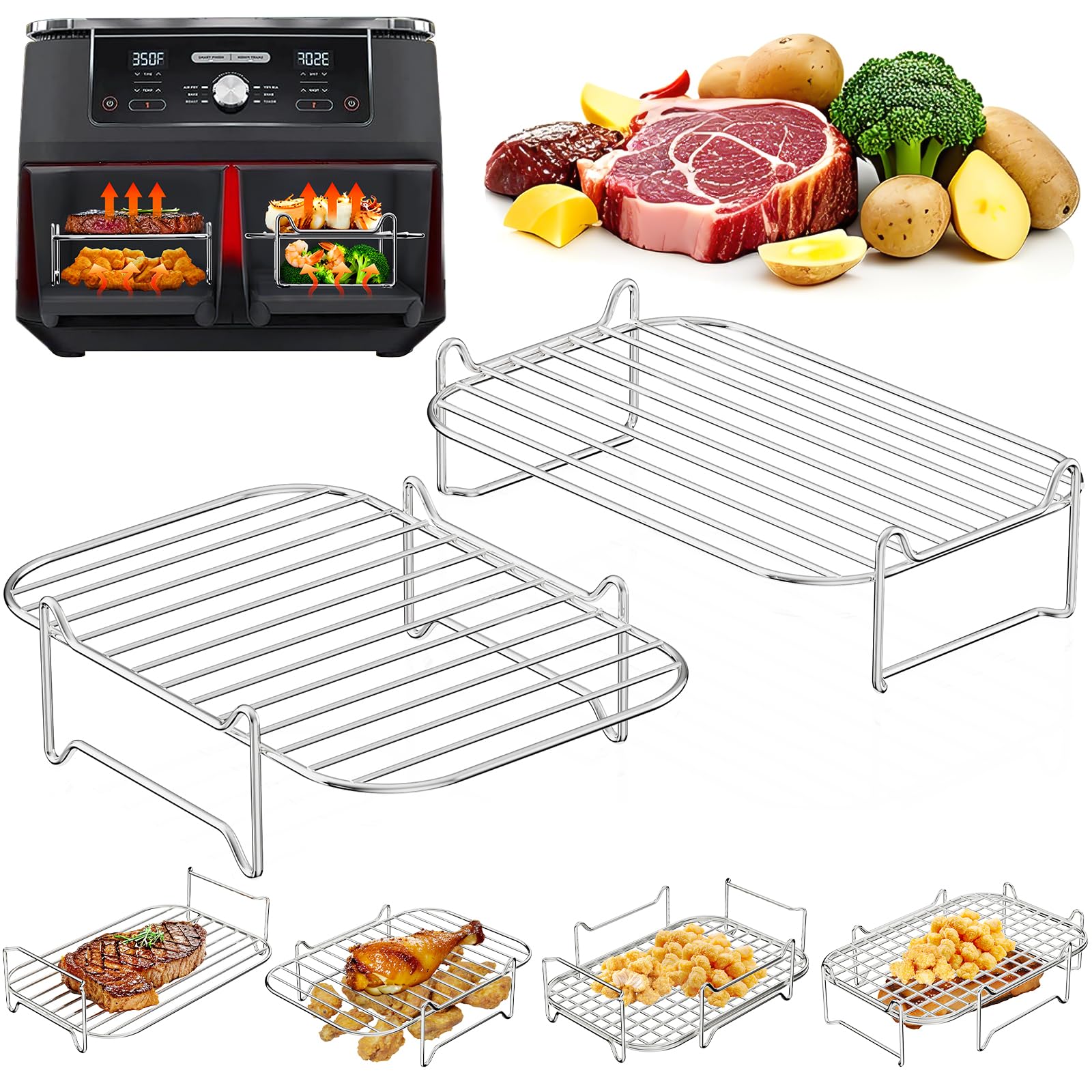 Erweitern Sie die Einsatzmöglichkeiten Ihrer Heißluftfritteuse mit diesem stapelbaren Zubehör aus lebensmittelechtem Edelstahl 304, das eine größere Kochfläche bietet und eine optimale Luftzirkulation gewährleistet.