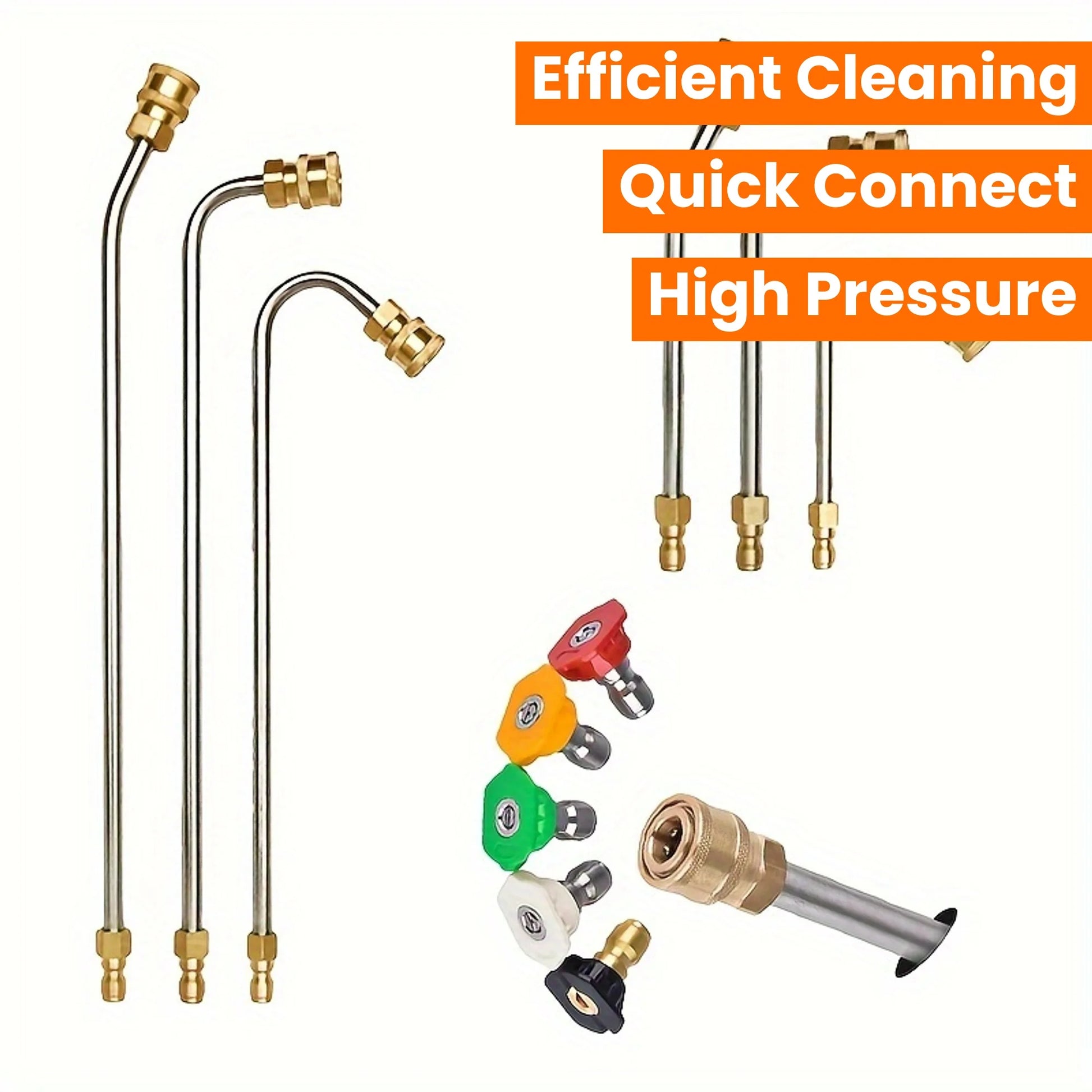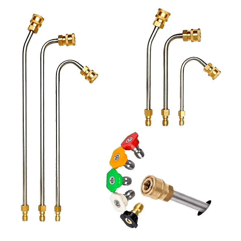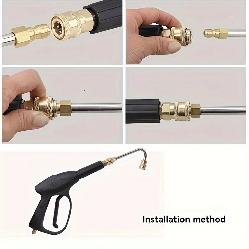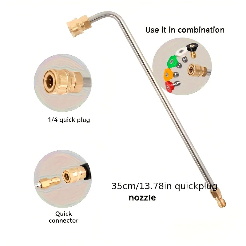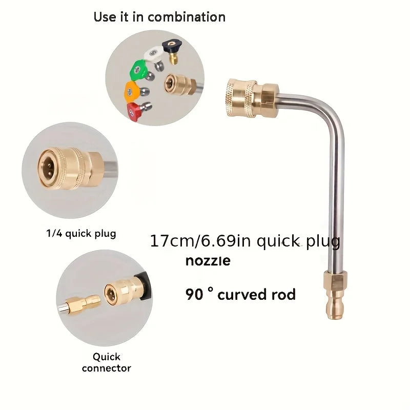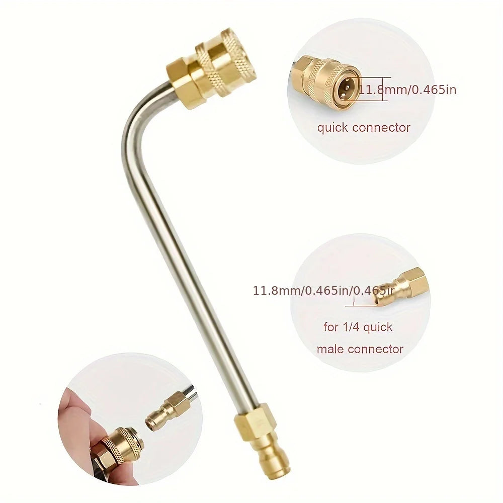 Dieses Winkelstück aus Edelstahl mit U-Biegestange ist ideal für Hochdruck-Wasserpistolen in Autowaschanlagen. Es verfügt über einen Schnellanschluss und eine rechtwinklige 1/4 Zoll Verlängerung für flexible Anwendung und einfache Handhabung.