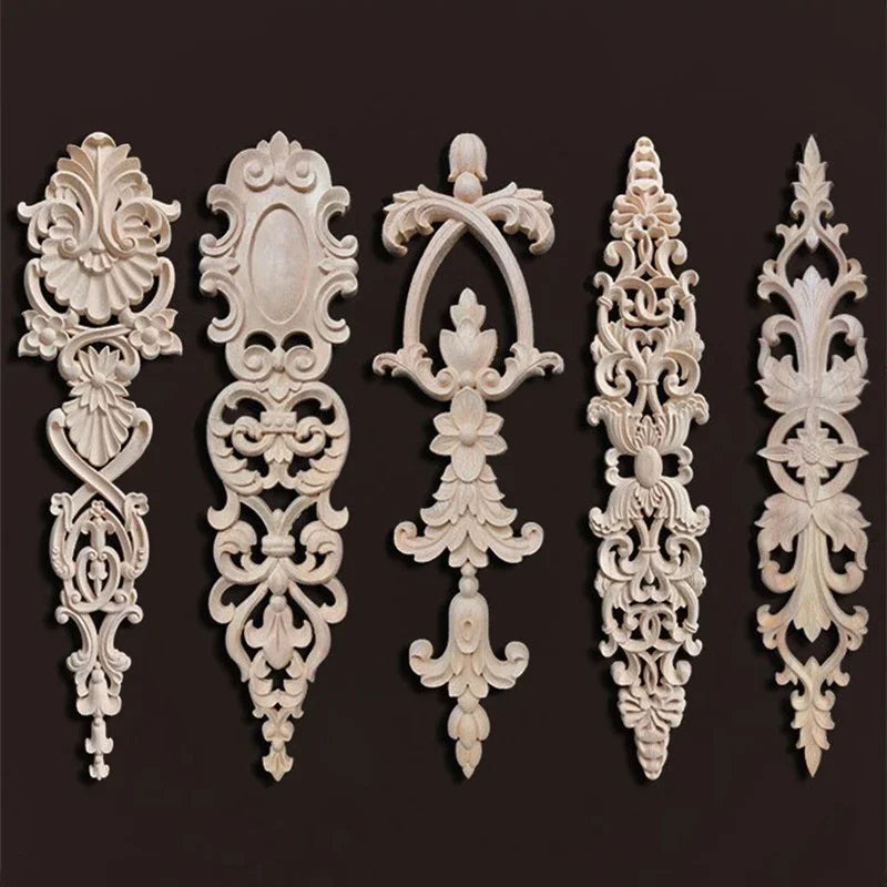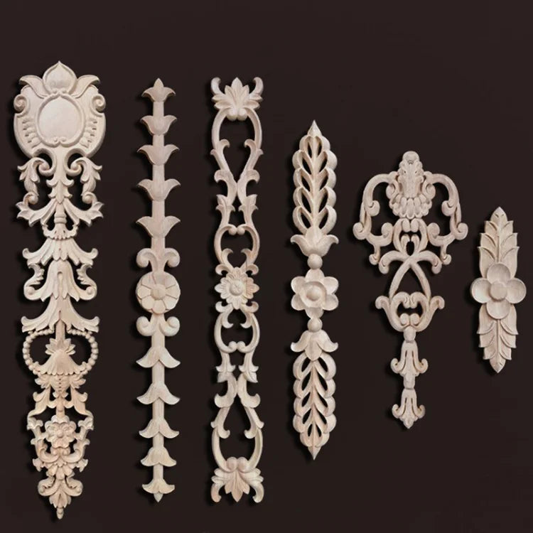 Holzmoebel Applikationen bieten eine elegante und naturverbundene Lösung zur stilvollen Verschönerung Ihres Wohnzimmers. Diese dekorativen Holzornamente mit einzigartigen Blumenmotiven verleihen Möbelstücken und Innenräumen eine zeitlose, antike Note und unterstreichen das gehobene Ambiente europaeischer Architektur.
