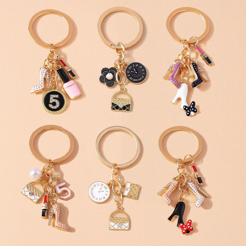Dieser modische Schlüsselanhänger in goldfarbener Zinklegierung vereint ein süßes simuliertes High Heels Motiv mit hoher Vielseitigkeit für den Alltag. Ideal als Geschenk oder für DIY-Schmuck und Handtaschen-Deko.