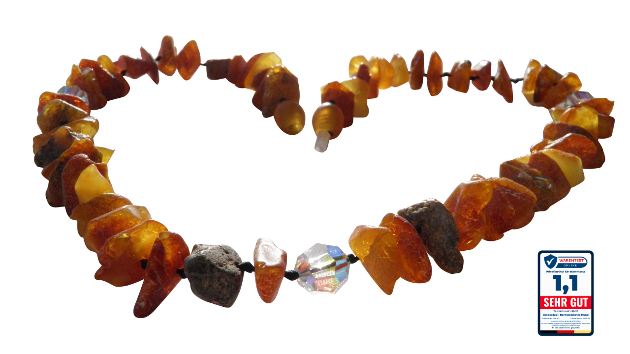 Diese Bernsteinkette dient rein dekorativen Zwecken und ersetzt keine professionelle tierärztliche Beratung oder Behandlung. Aussagen zu schützenden Eigenschaften gegen Parasiten sind gesetzlich untersagt und werden bewusst vermieden.