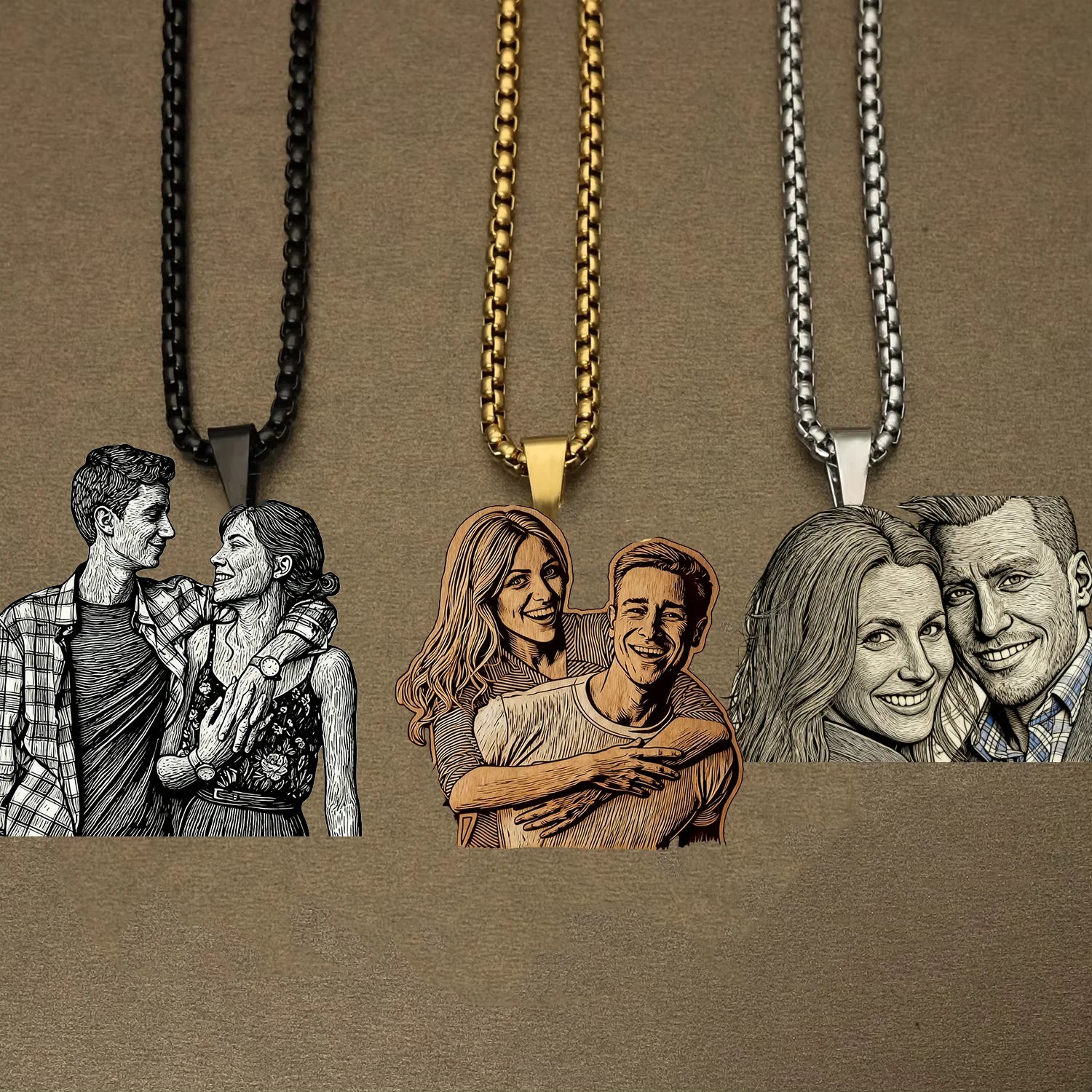 Personalisierter Foto-Halsketten-Anhänger mit individueller Gravur Damen Herren