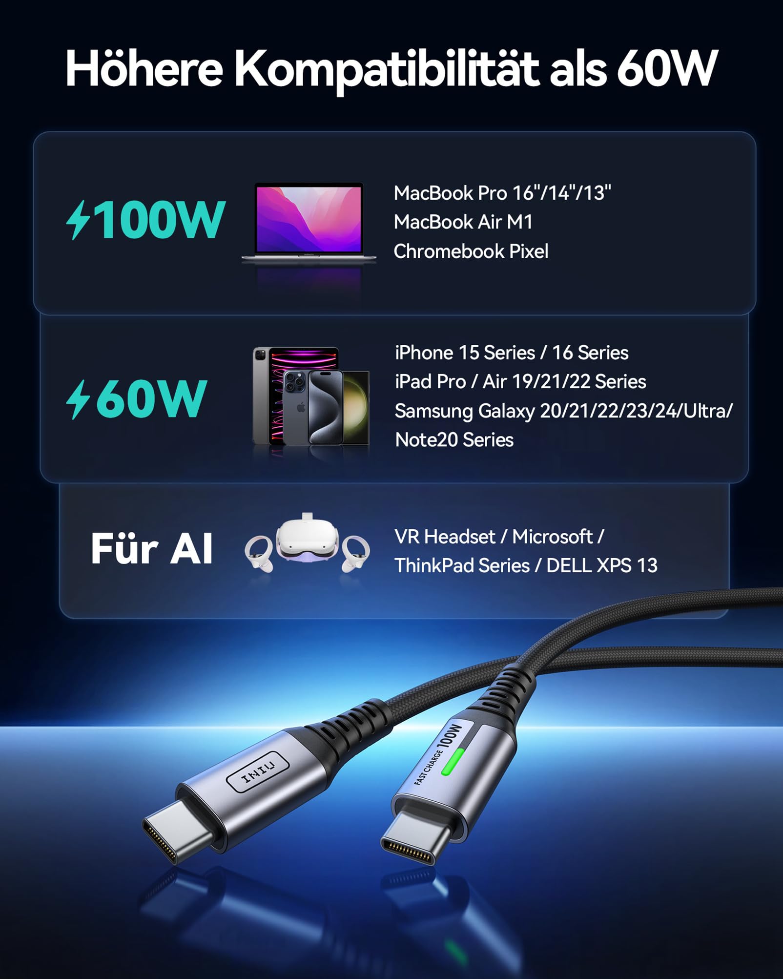 - 100W Ladeleistung gewährleistet superschnelles Aufladen verschiedener Geräte, von Smartphones bis Laptops.