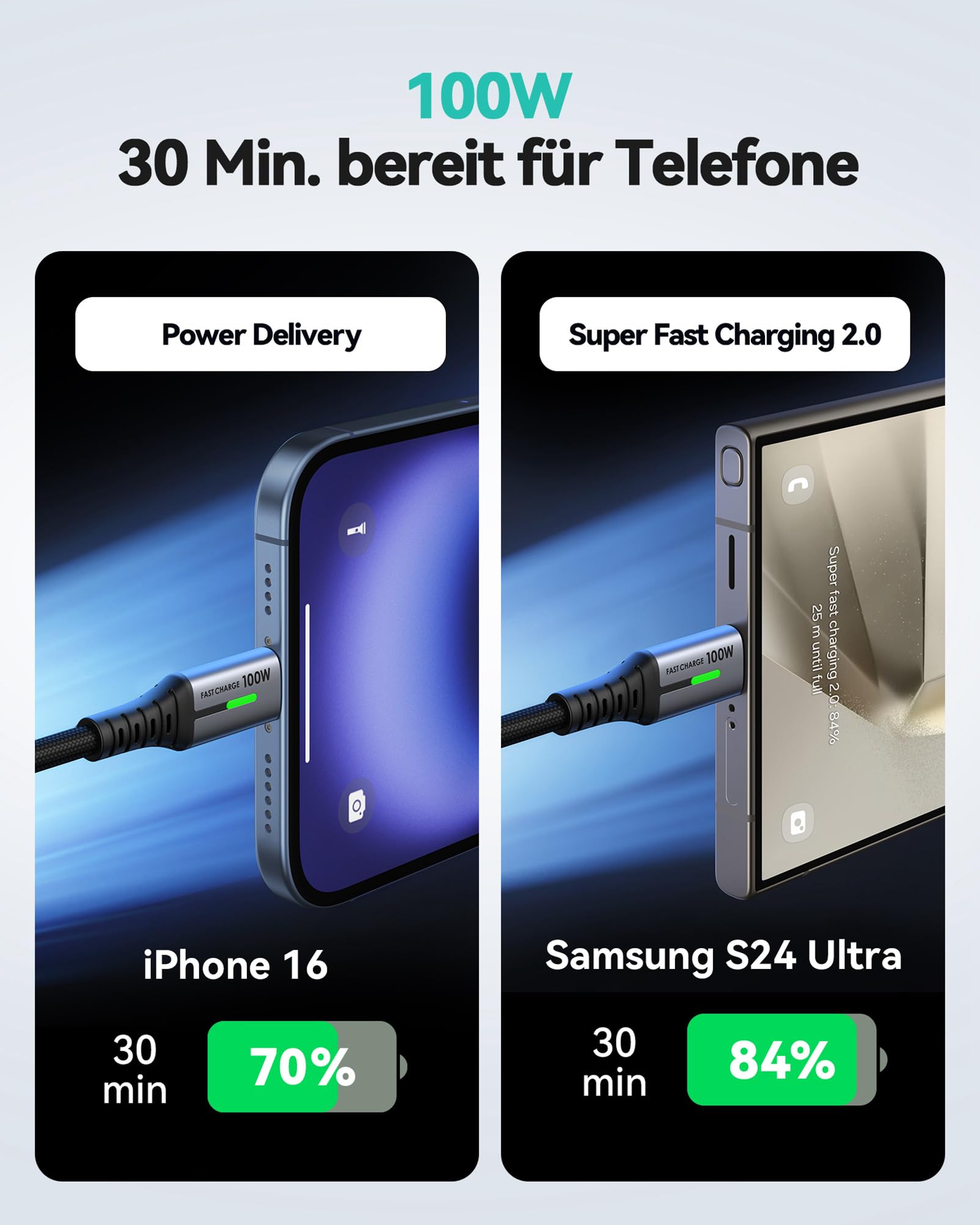 Dieses Schnellladekabel bietet Ihnen eine perfekte Kombination aus Geschwindigkeit, Sicherheit und Strapazierfähigkeit, ideal für den täglichen Gebrauch und unterwegs.