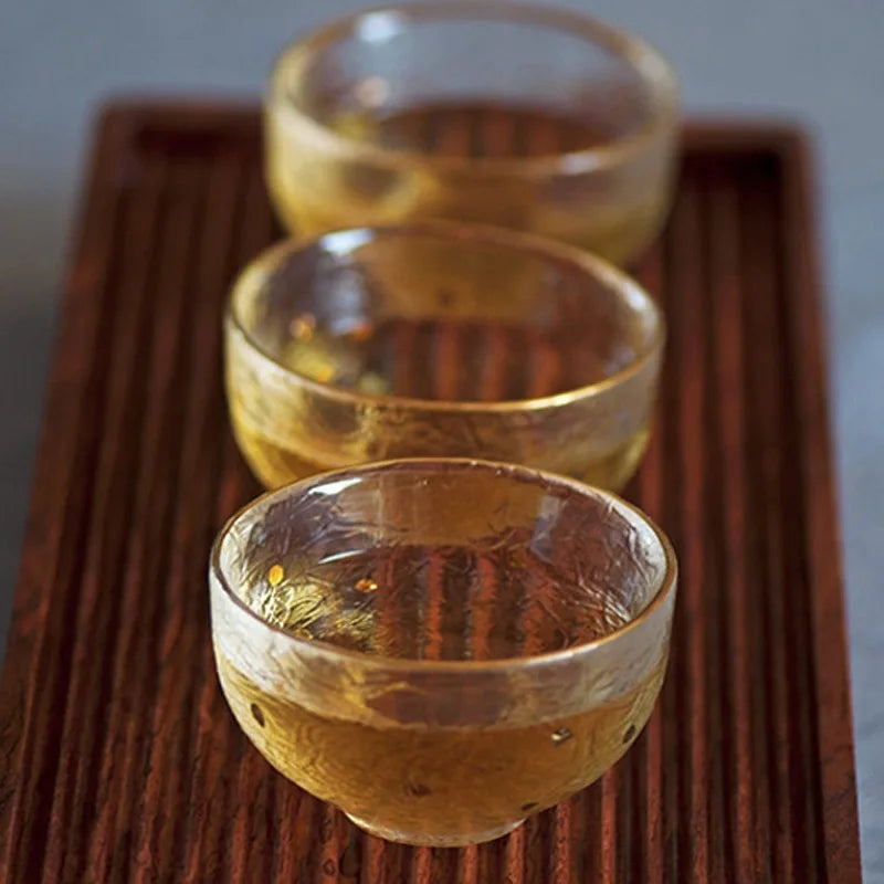 Exklusive Teeschale aus gehämmertem Glas mit Goldrand