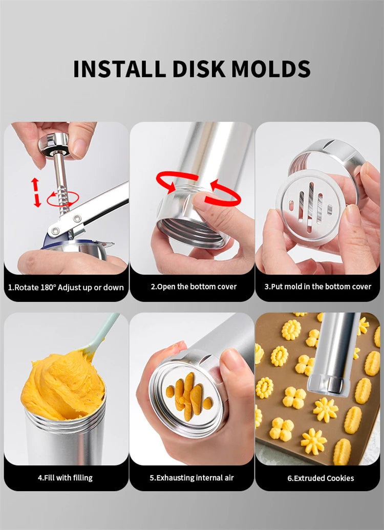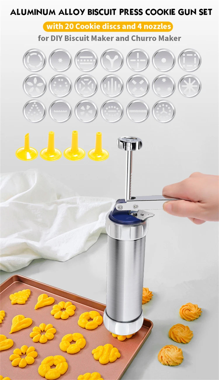 Kekspresse Set - Edelstahl Keksform mit 20 Scheiben und 4 Düsen für individuelle Plätzchen