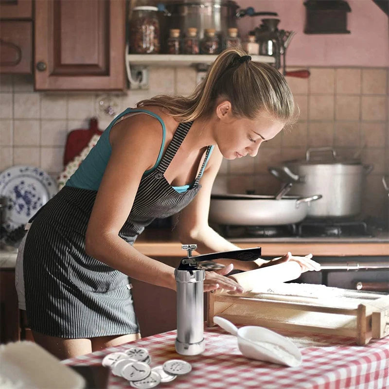 Sie möchten Ihre Kekse vielseitig und präzise formen, ohne mühsames Ausrollen und Ausstechen? Dieses Kekspresse-Pistolen-Set aus robustem Edelstahl macht das Backen effizienter und sauberer.