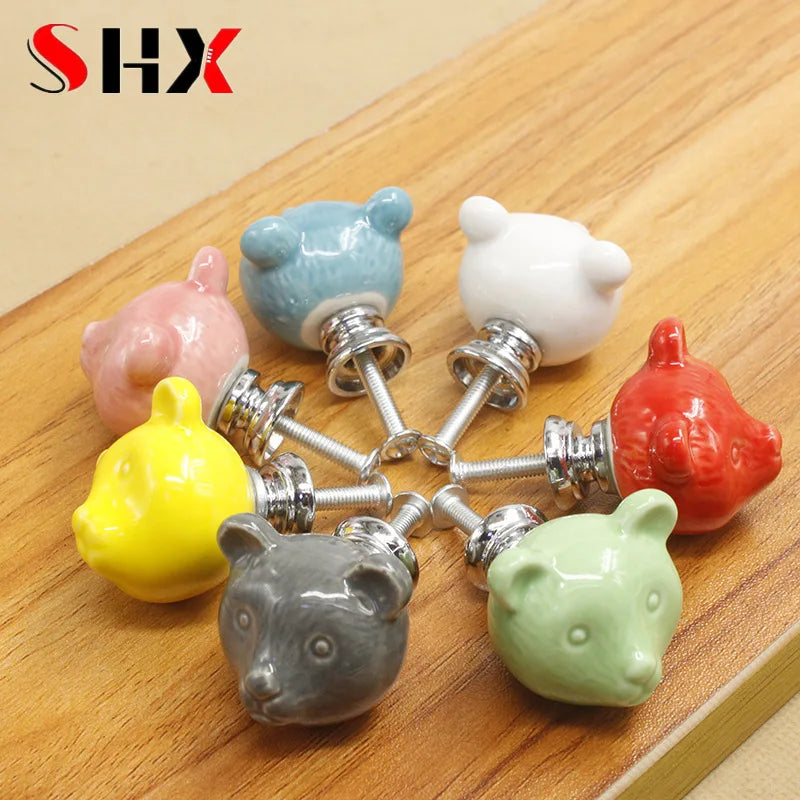 Keramik Schubladenknopf 3D Cartoon Möbelgriff in 7 Farben – Kreativ - Robust