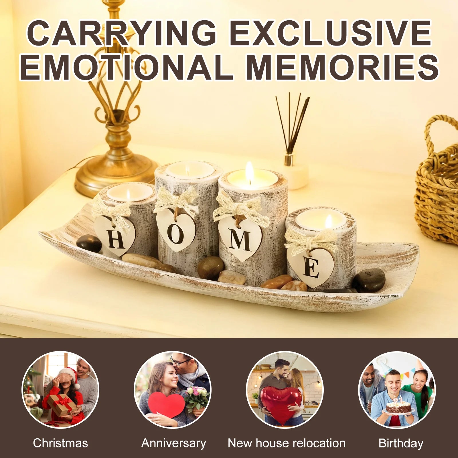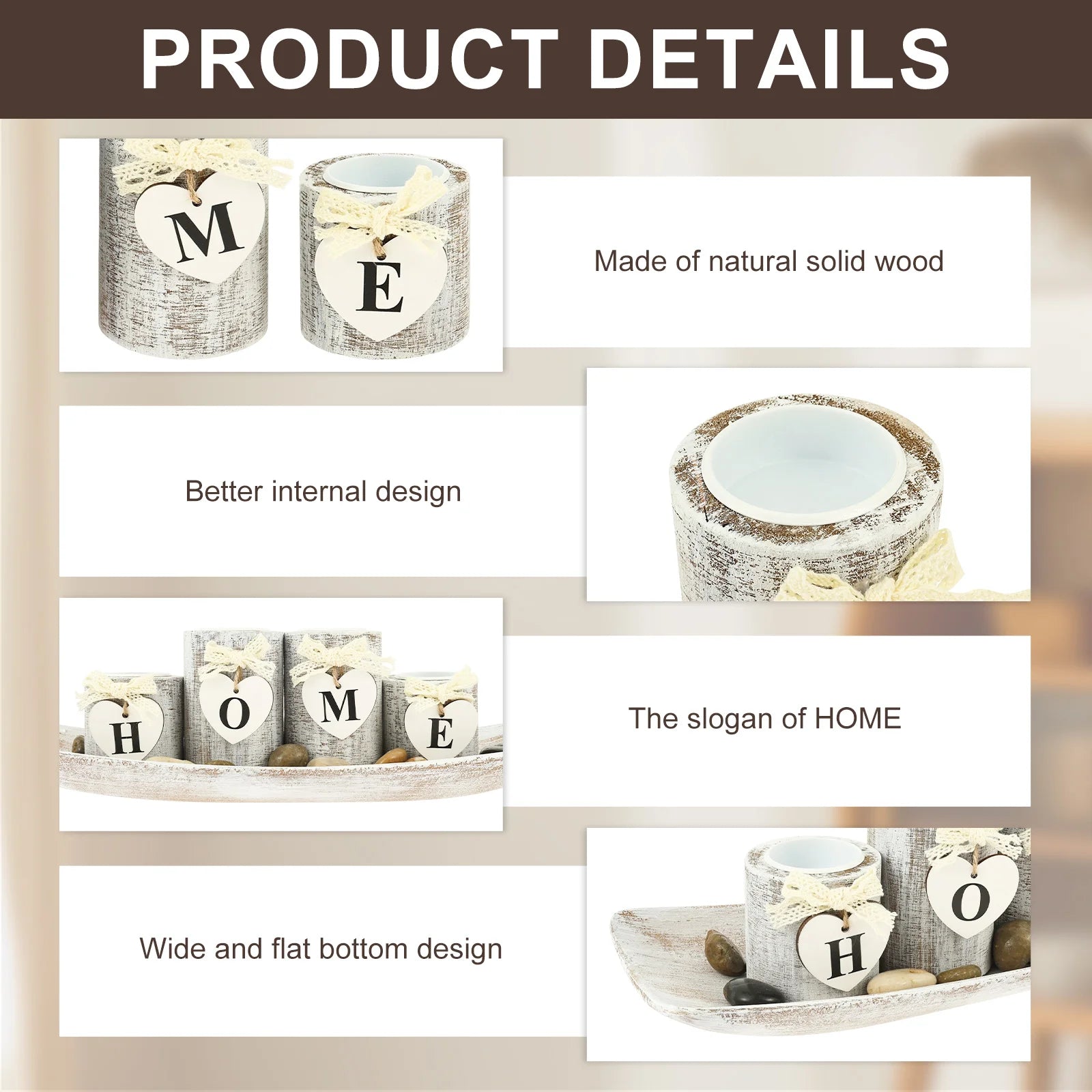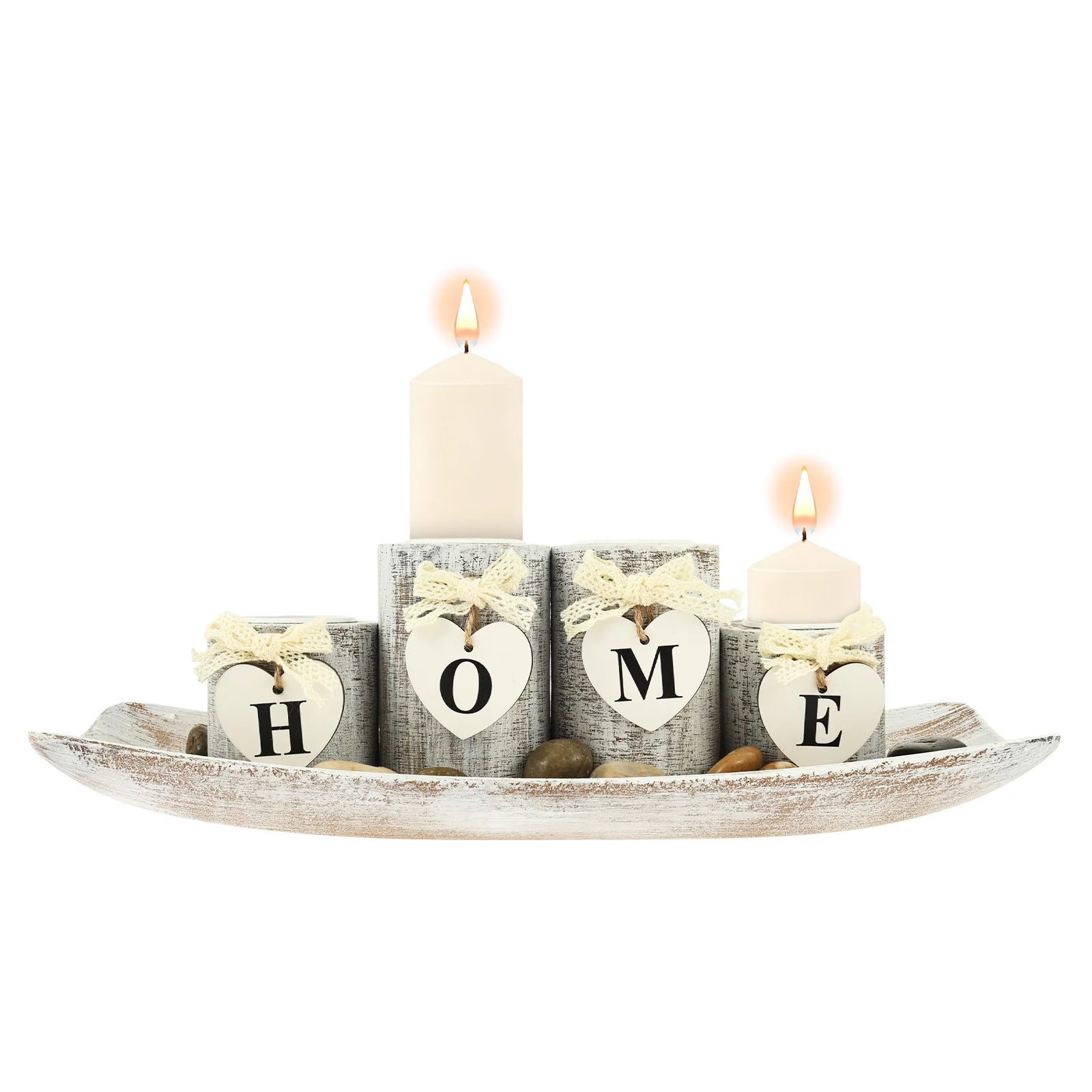 Verwendung: Heimdekoration fuer Innenraeume Material: Hochwertiges Holz Bestandteile: Vier Teelicht Kerzenhalter, ein Holztablett Einsatzbereiche: Esstisch, Wohnzimmer, Badezimmer, Nachttisch Eigenschaften: Robust, natuerliches Design, leicht zu platzieren
