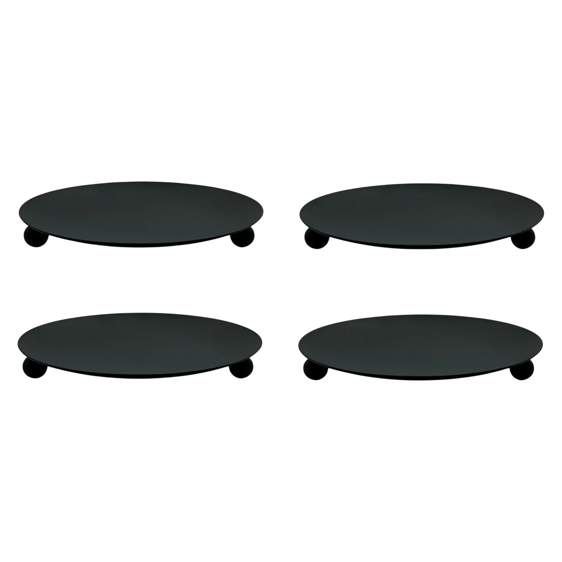 - Vier schwarze Kerzenteller für vielfältige Dekorationsmöglichkeiten